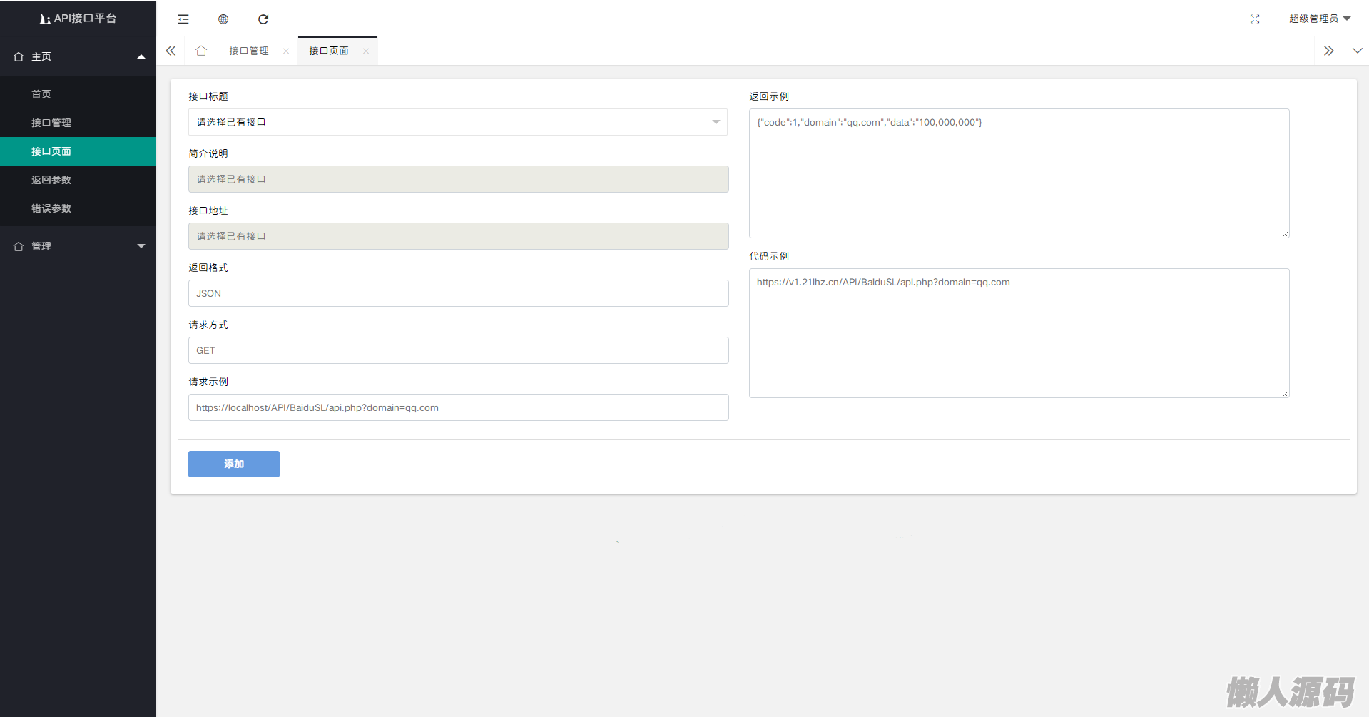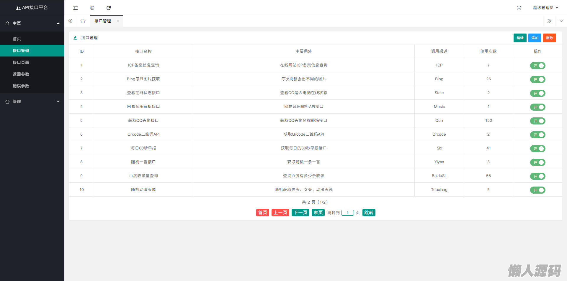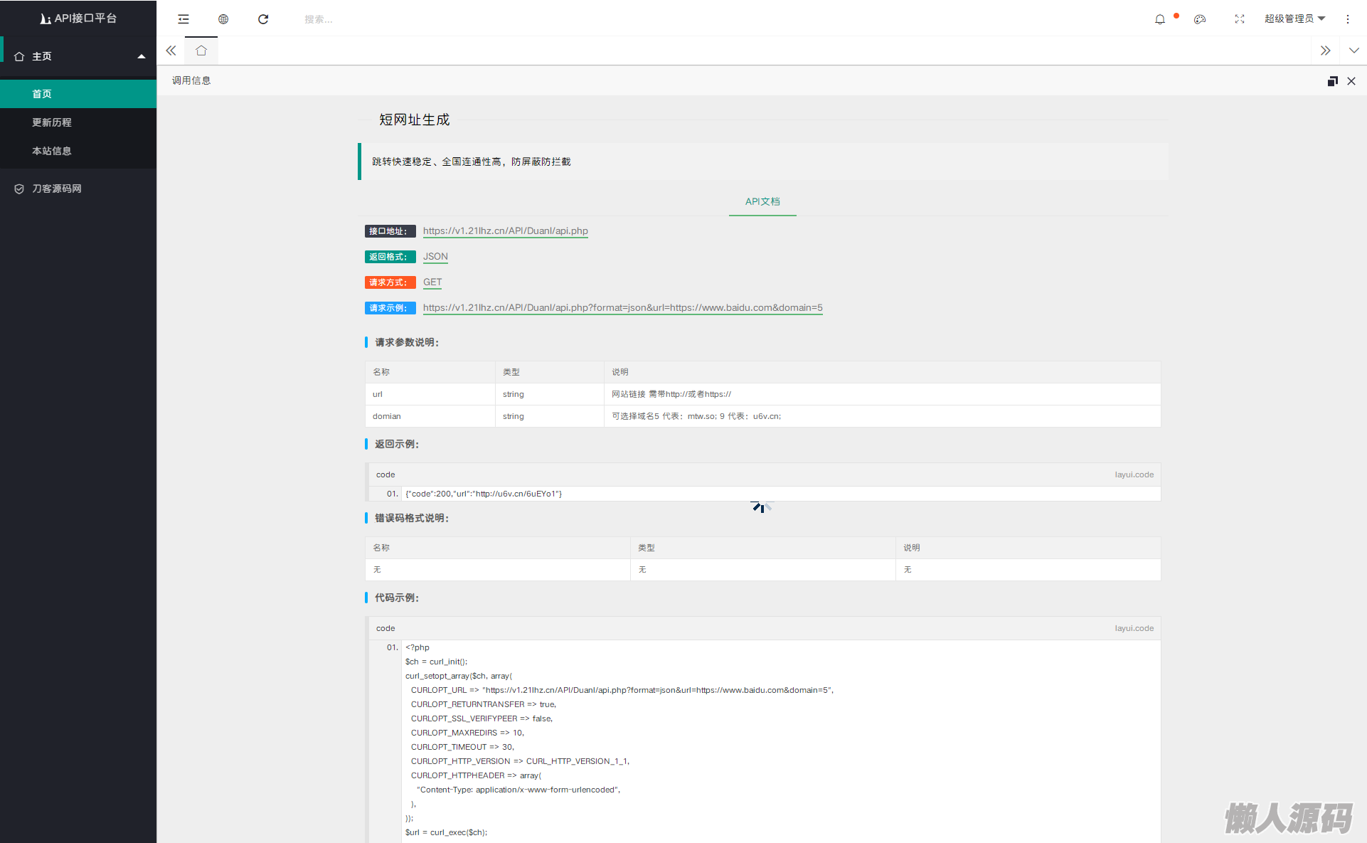 懒人源码 » 2024全新开发API接口调用管理系统网站源码 附教程