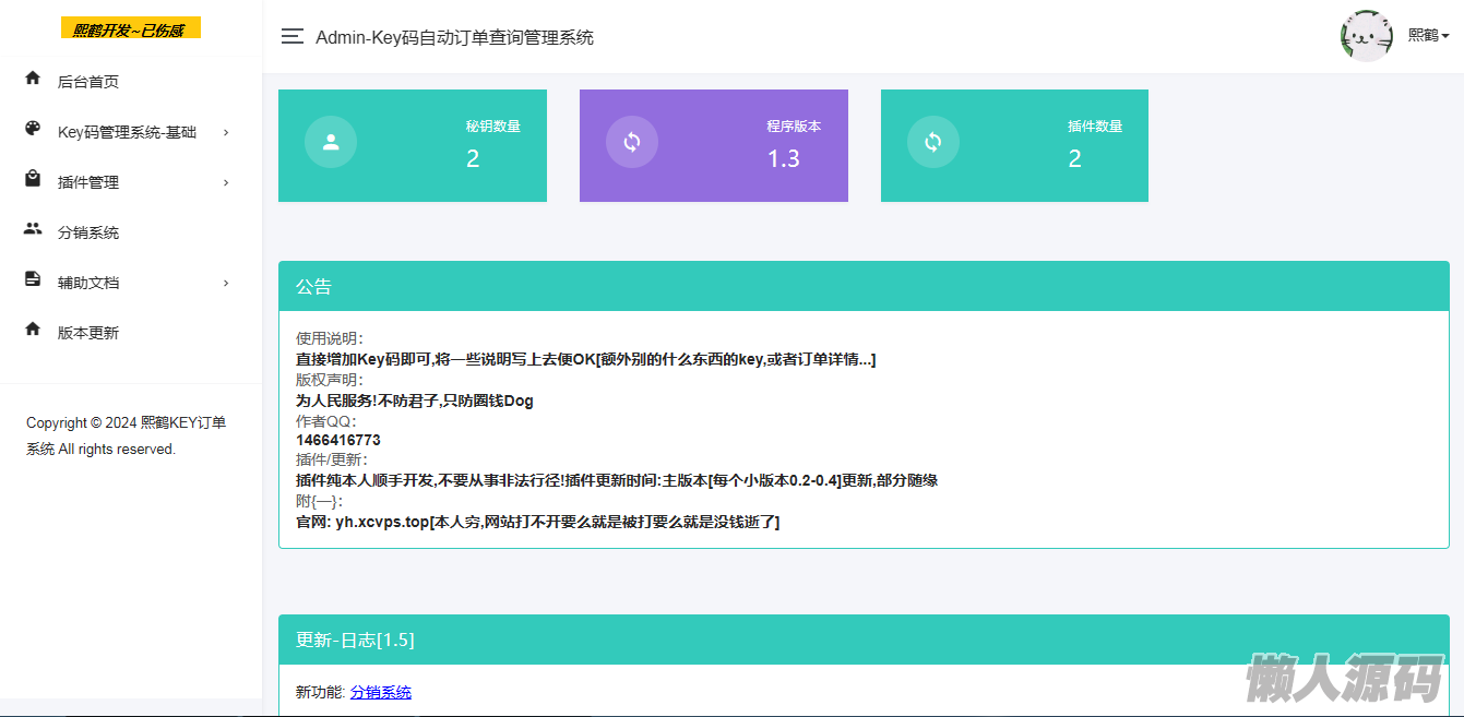 懒人源码 » 汐鹤Key码查询+网站授权系统源码