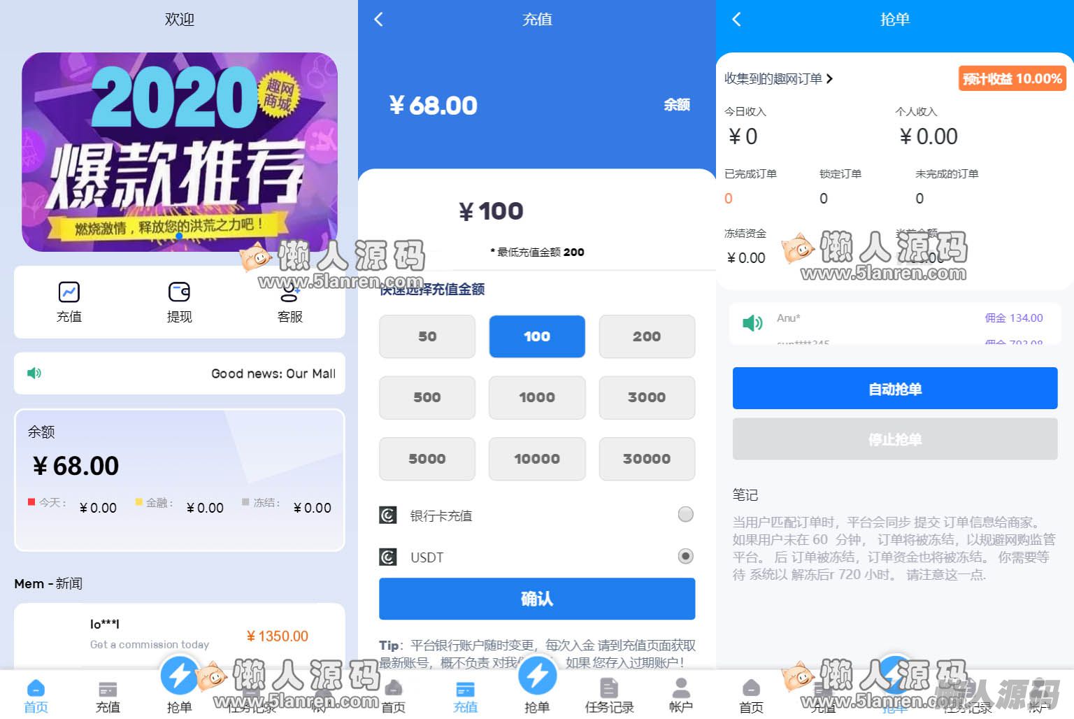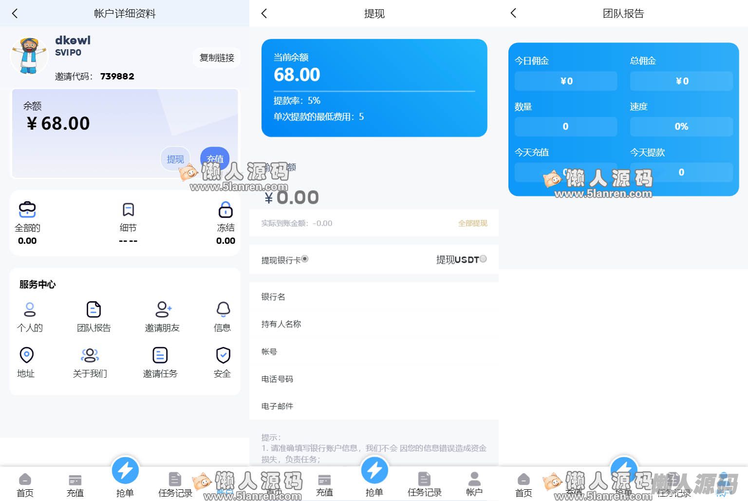 懒人源码 » 2024全新多语言海外抢单刷单系统源码 订单自动匹配 支持分组 代理后台