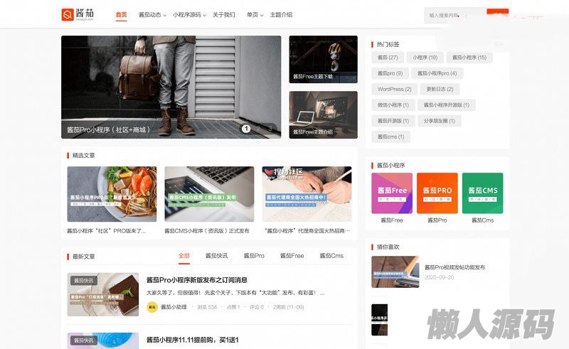 懒人源码 » WordPress主题 酱茄Free v1.0.0开源版自媒体资讯博客主题模板