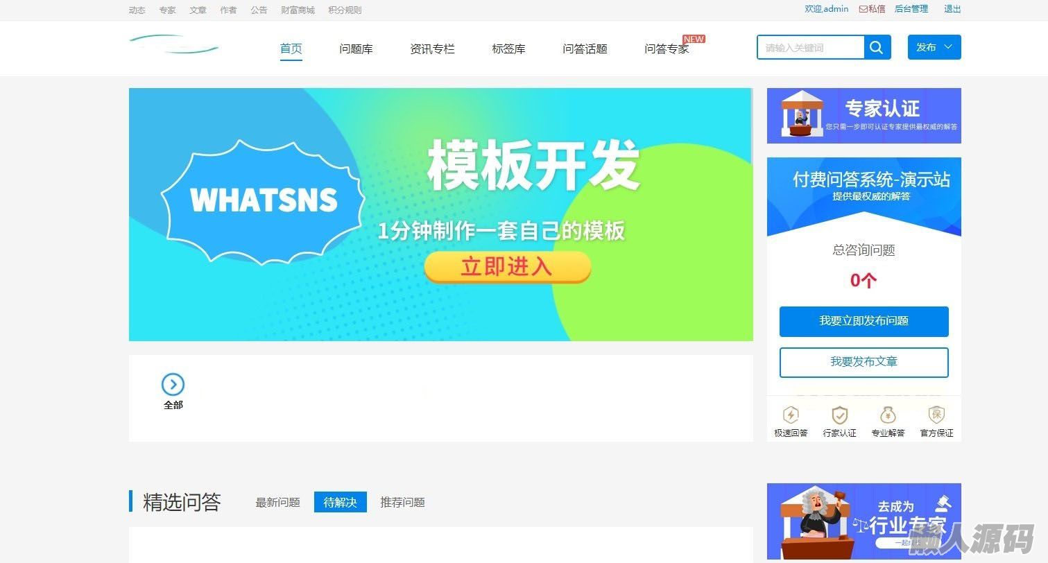 懒人源码 » Whatsns内容付费seo优化带采集和熊掌号运营问答系统