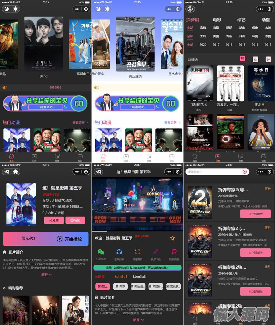 懒人源码 » 2022 新版UI界面 影视微信小程序源码 附教程