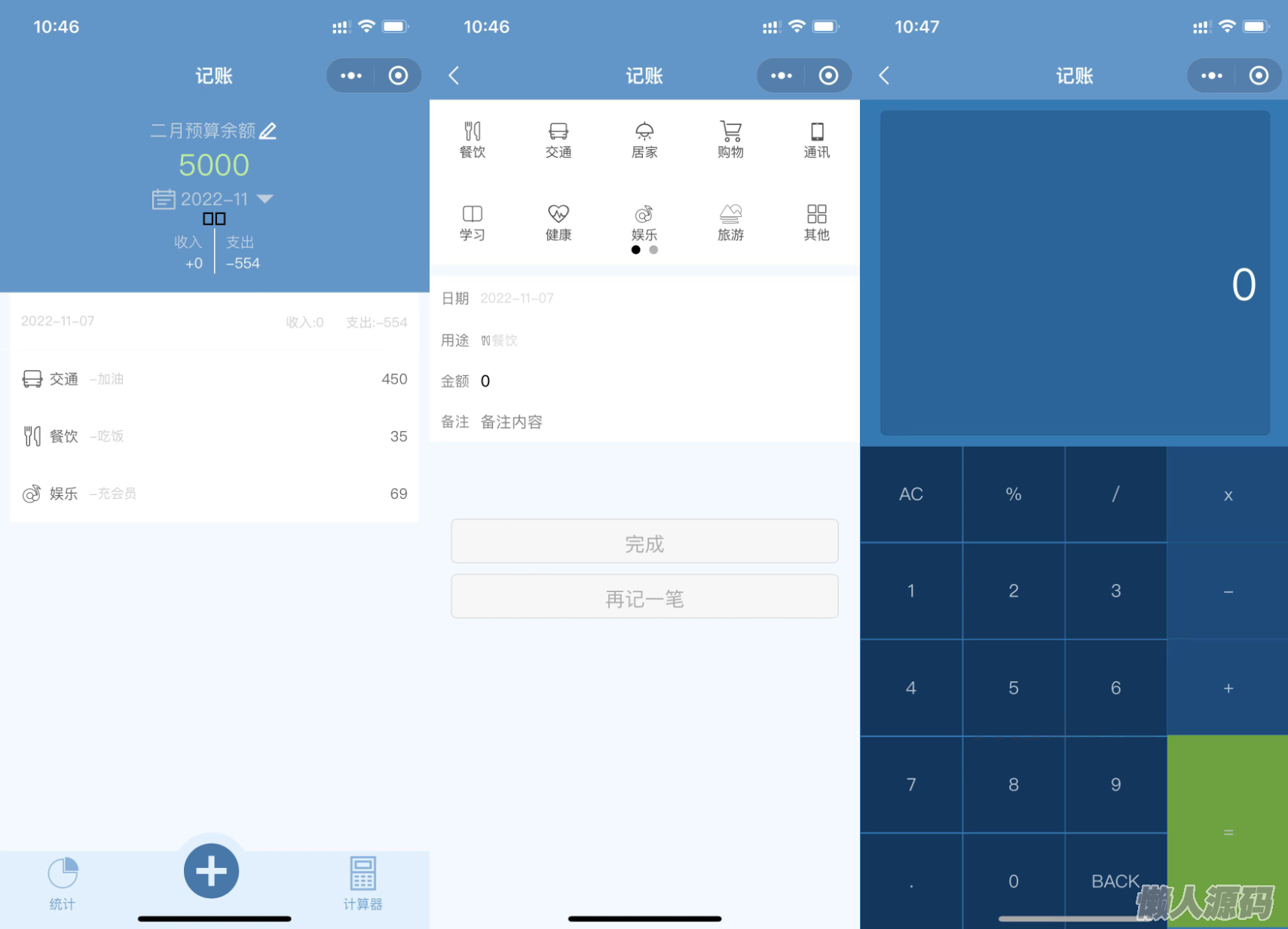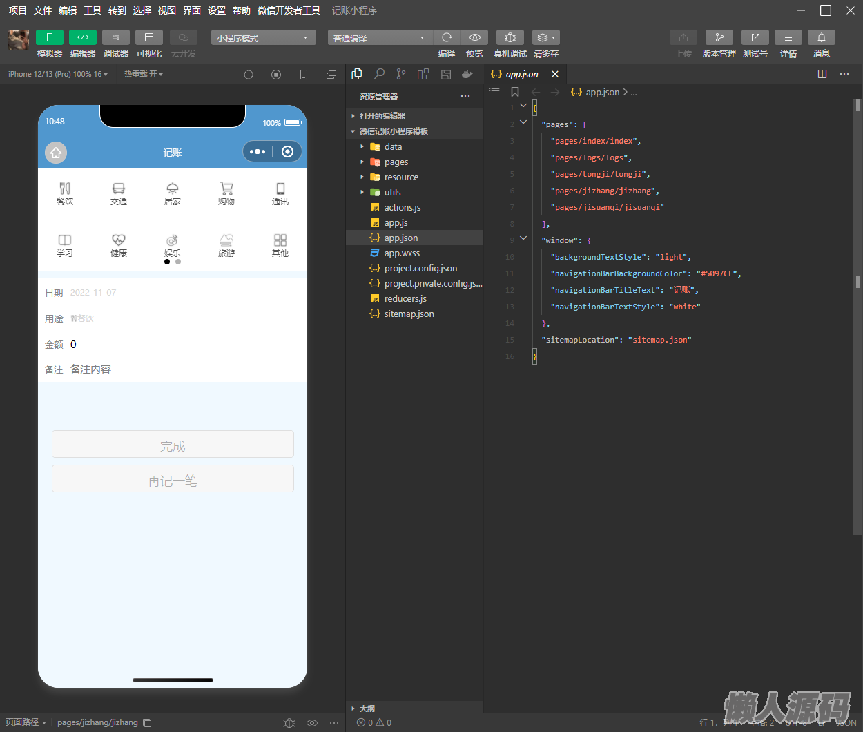 一款实用的记账列表,分类记账,生活 记账小程序 工具。包含:添加记账、编辑记账、统计分析、计算器等4个页面。