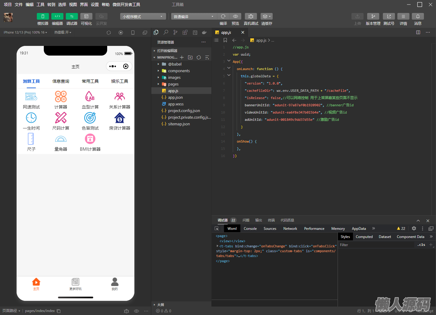 懒人源码 » 超实用的多功能工具箱小程序源码+支持流量主变现