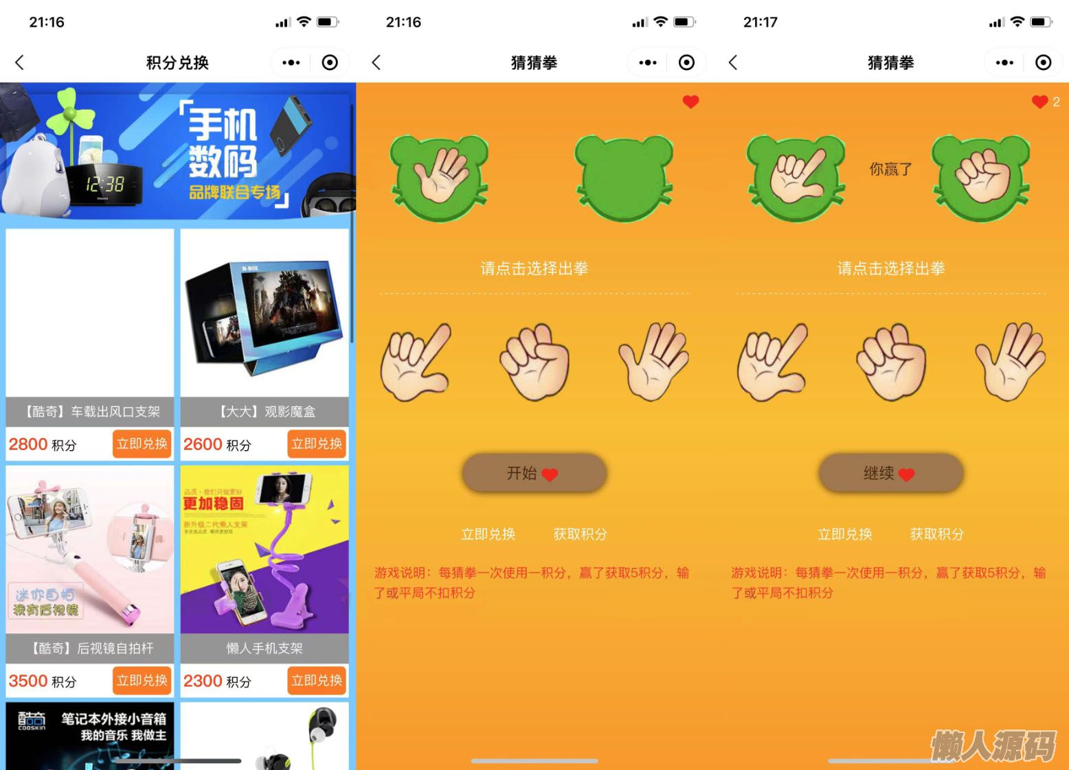 猜拳游戏小程序源码 大转盘积分游戏小程序源码 积分游戏小程序源码
