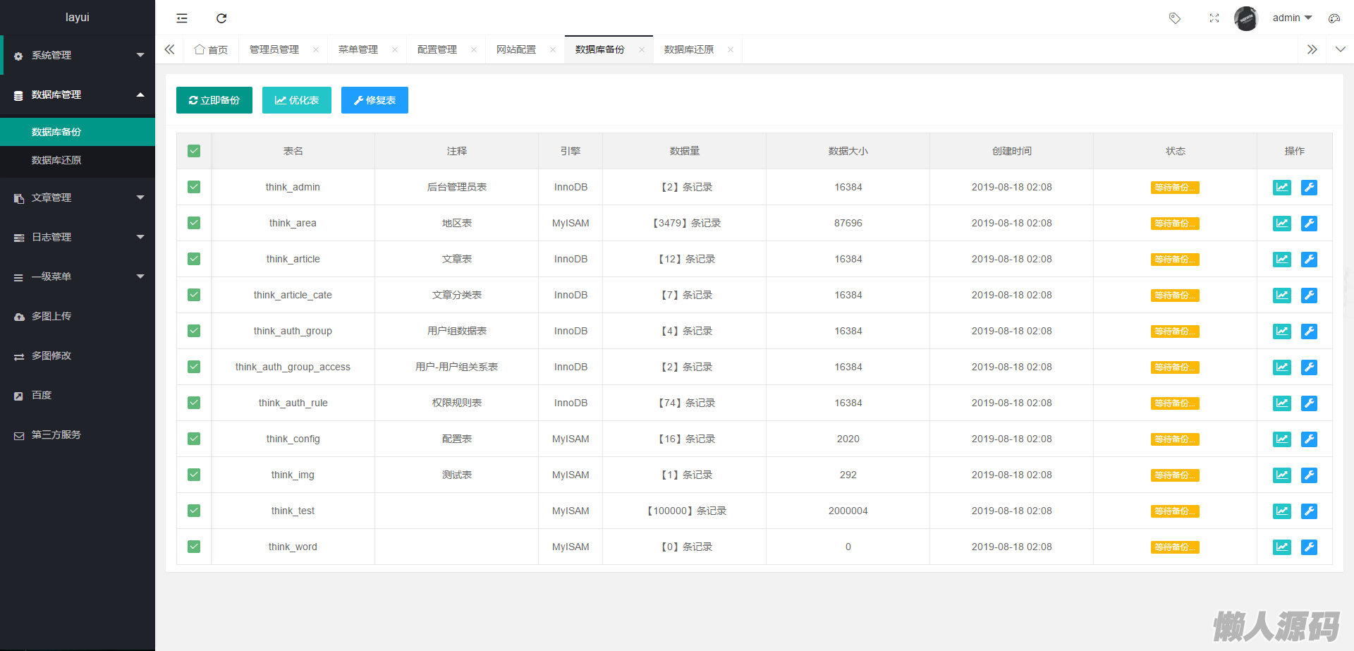 懒人源码 » thinkphp5+layui php后台管理系统-集成第三方短信附件等应用
