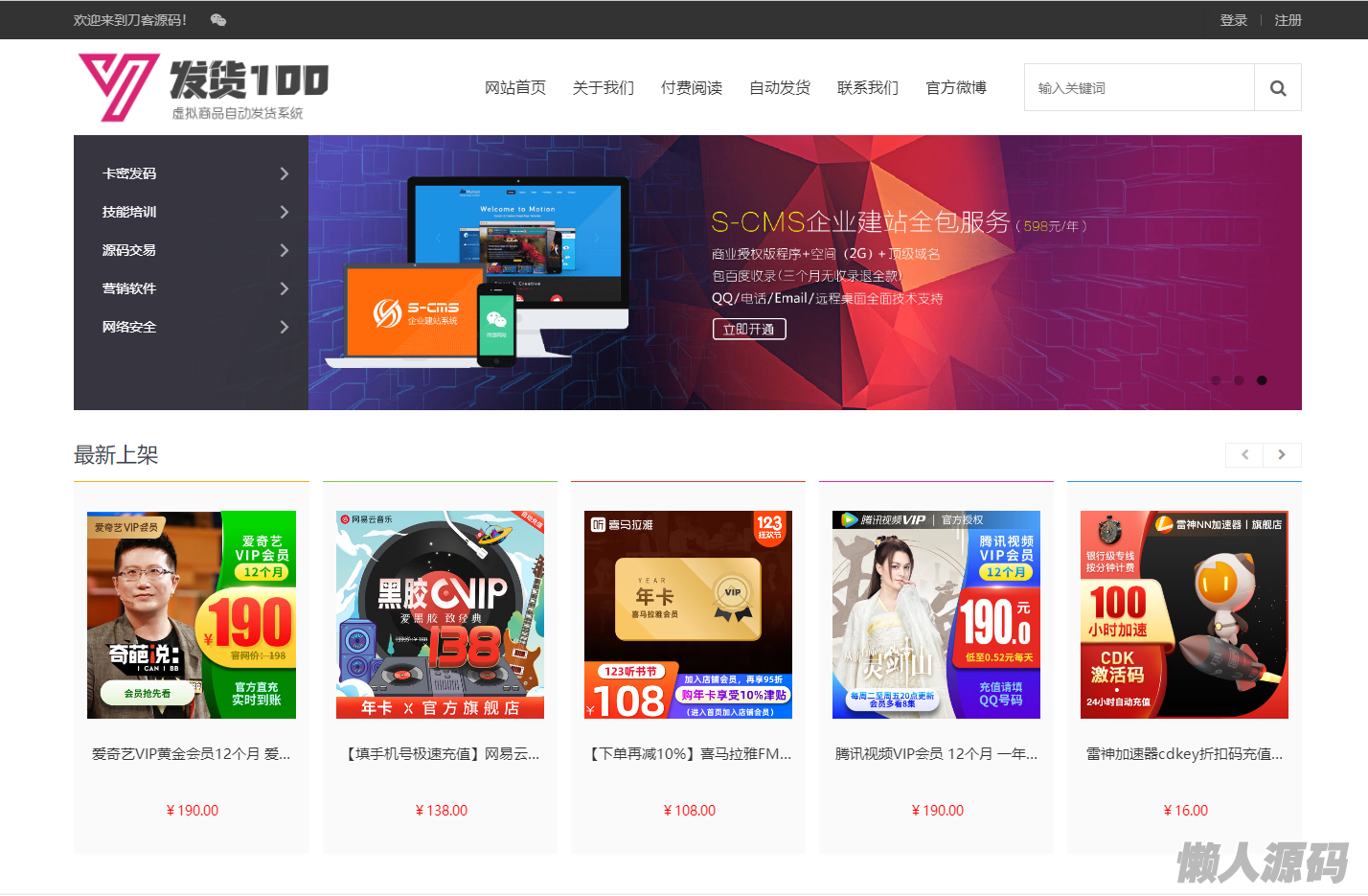 懒人源码 » PHP虚拟商品自动发货系统网站源码_支持商家入驻_对接支付接口