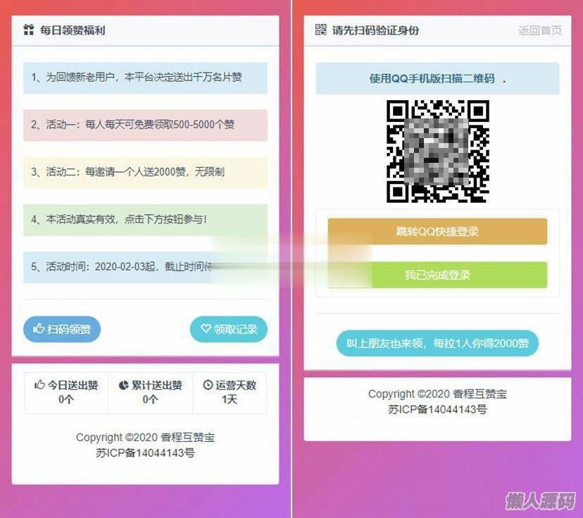 用户扫码后每天可以免费 500-5000 个赞,非常适合无成本回馈客户,还具备无成本性质