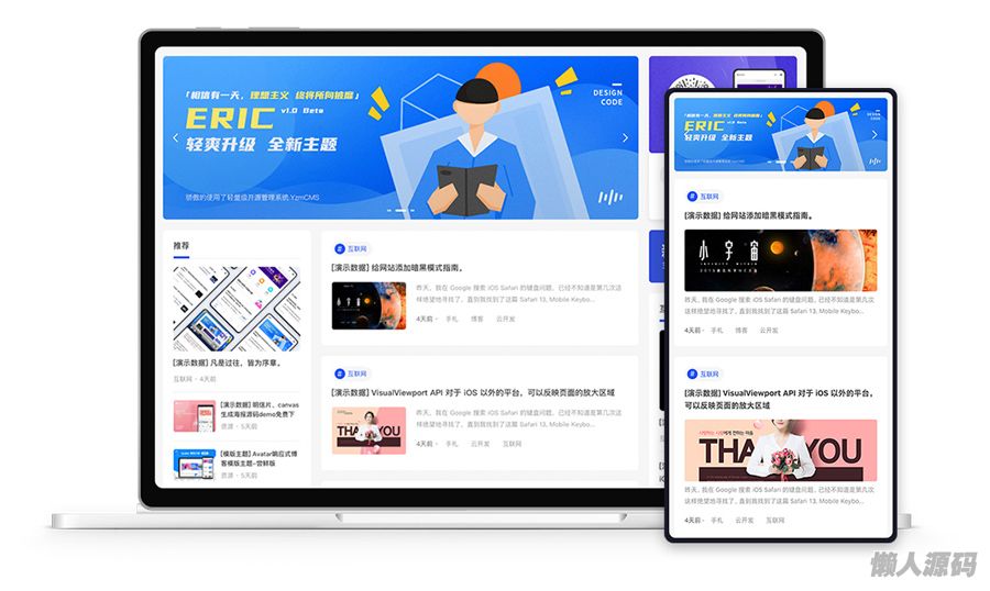 懒人源码 » YzmCMS全新轻爽极简风格模版主题(Eric v1.0)