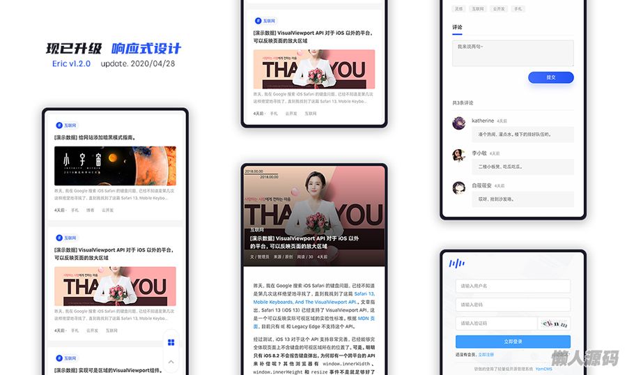 YzmCMS全新轻爽极简风格模版主题(Eric v1.0)
