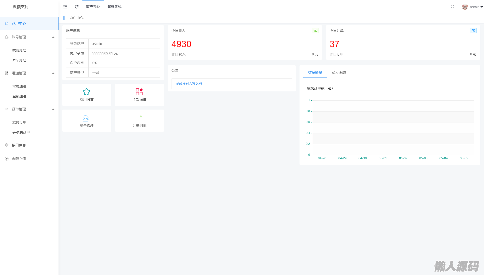 懒人源码 » Epay纵横支付 游戏账号点券全通道支付系统 | 抖音虎牙快手yy直播QB支付,DNF游戏点券,全通道几十种支持,站长亲测