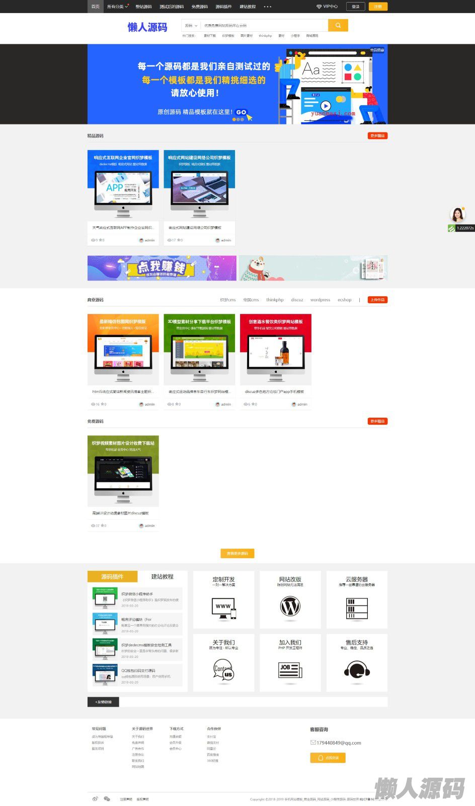 本套源码以thinkphp5.1新版为内核,以thinkcmf5为后台数据管理,前台模板仿众图网,网站模板自适应,首页样式美观大气。