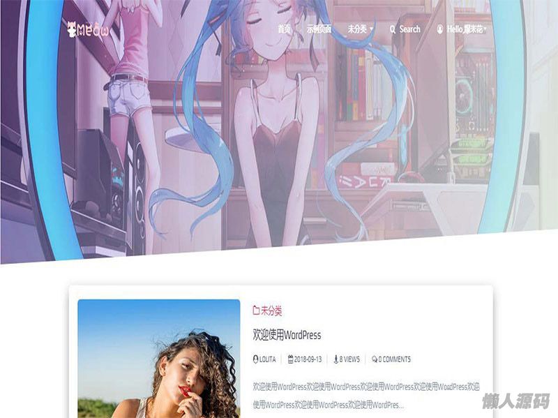 懒人源码 » 佛系WordPress主题 lolimeow响应式个人博客主题模板