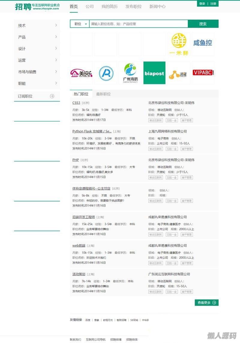 懒人源码 » Thinkphp仿拉勾网人才招聘网站源码