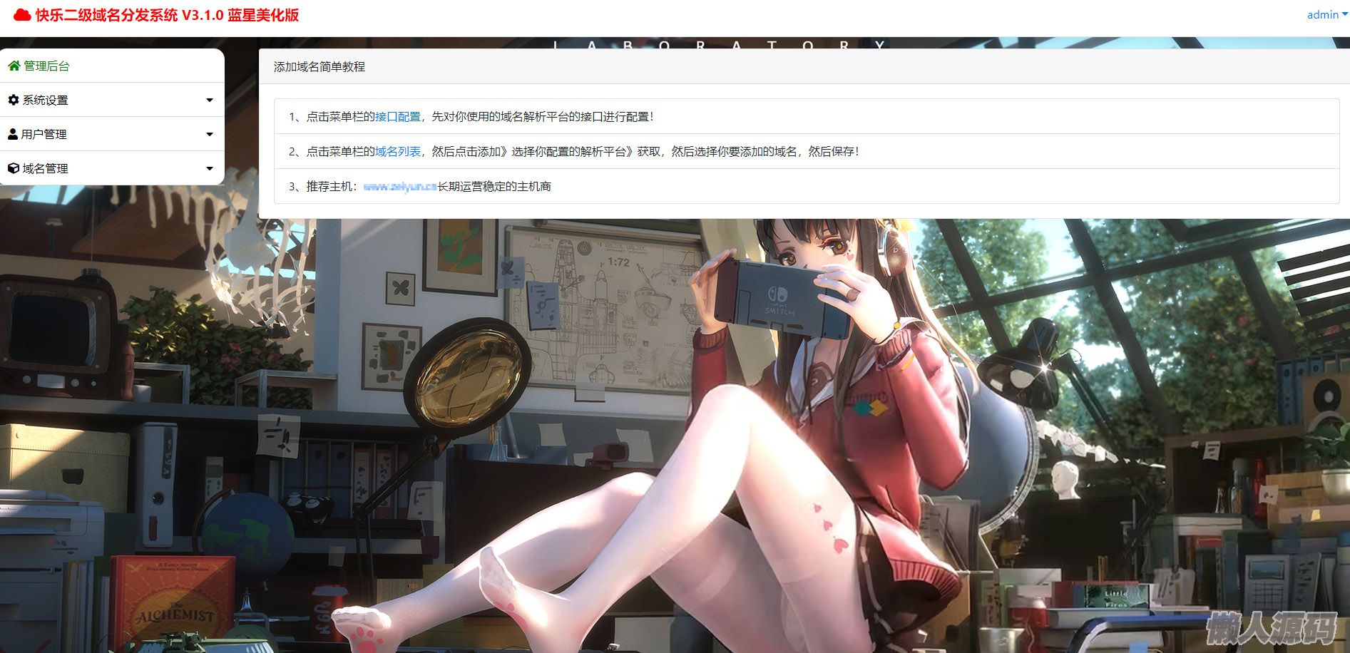 懒人源码 » 二级域名分发美化版源码+搭建教程