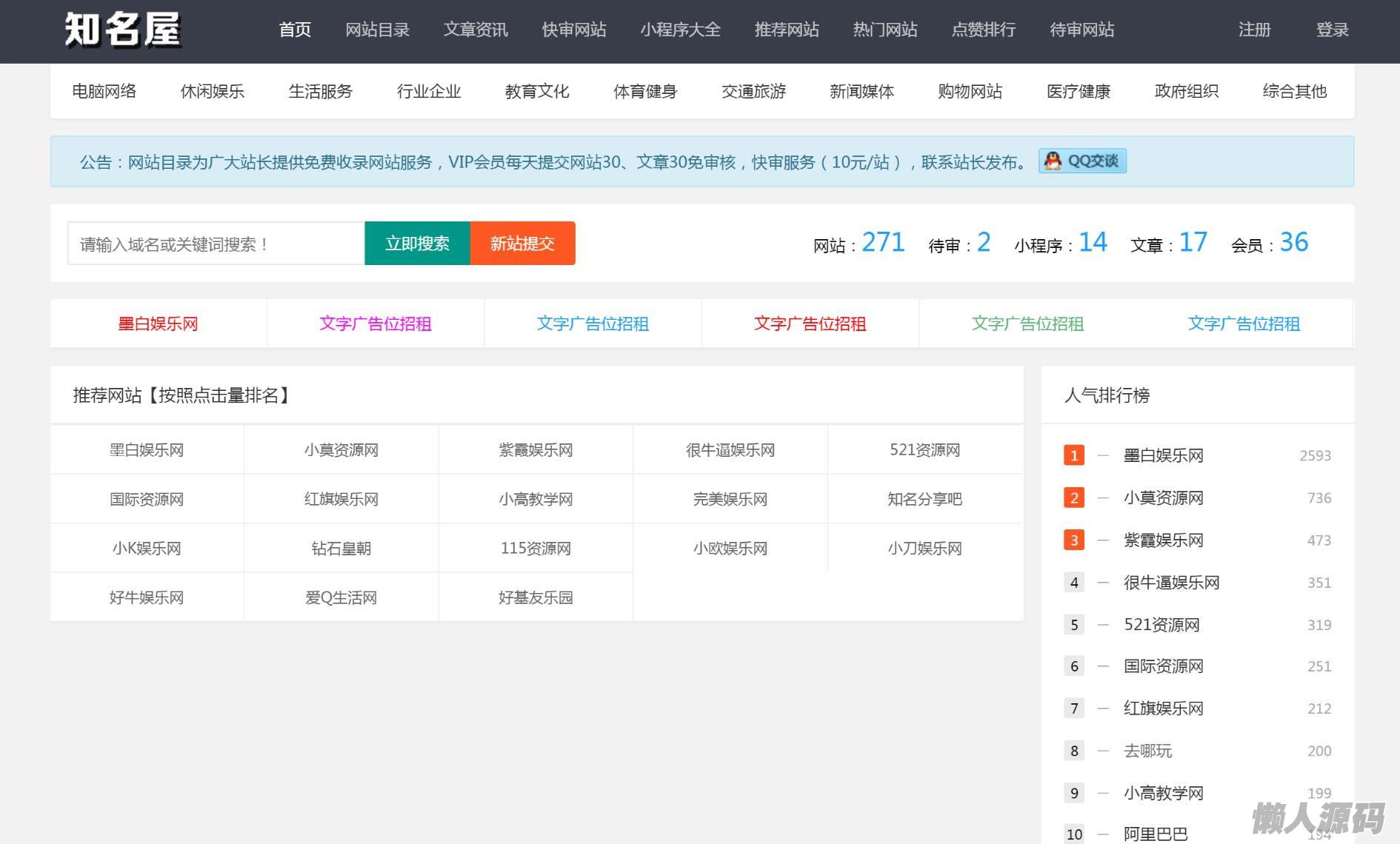 懒人源码 » 价值2999元的目录网导航网整站源码