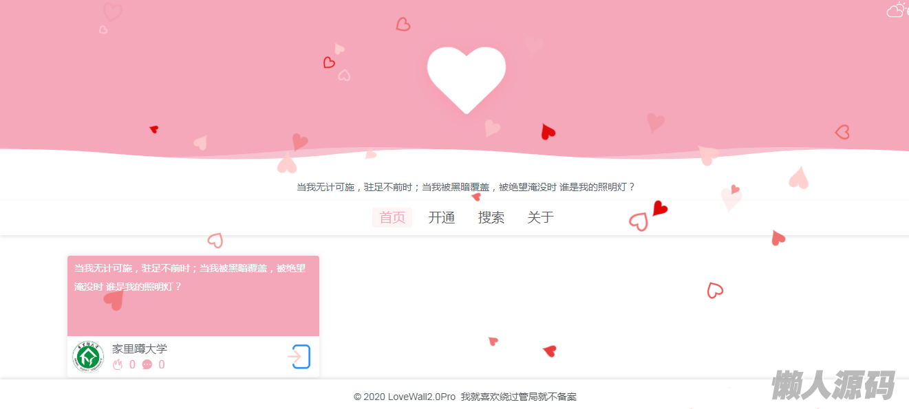 懒人源码 » 最新表白墙源码2.0pro网站php源码