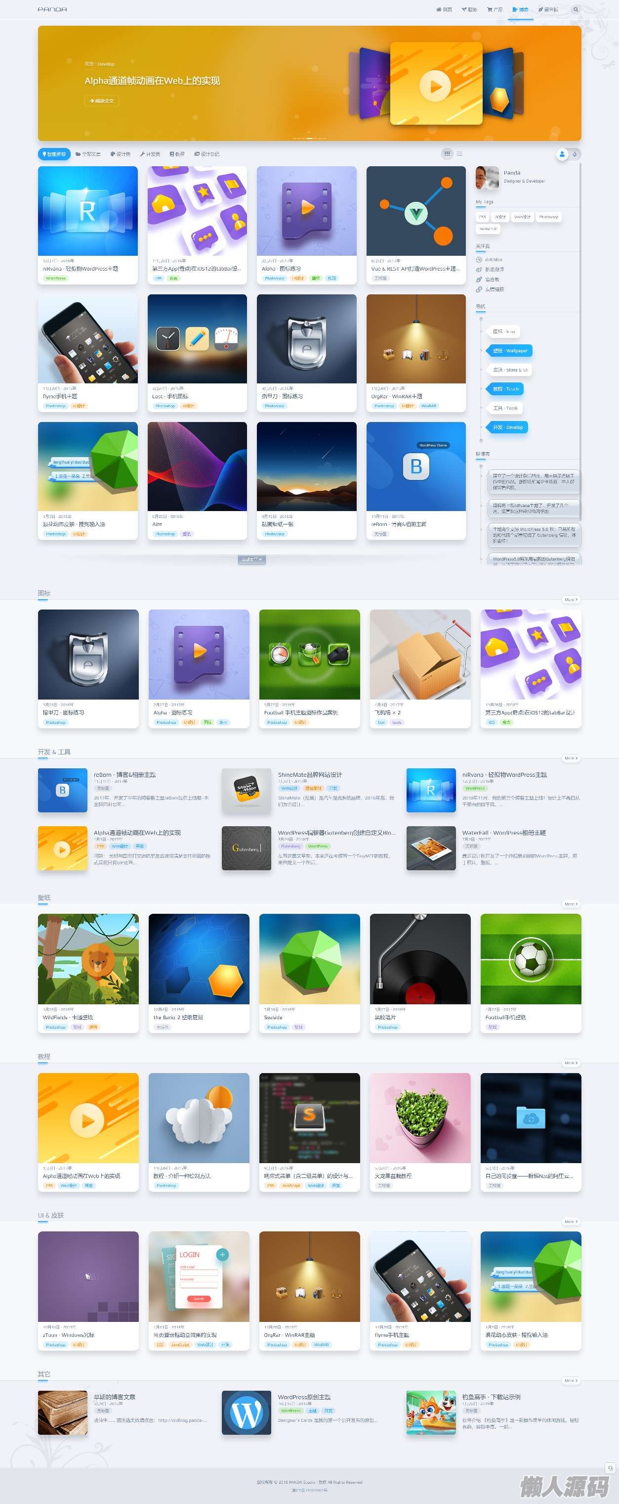 瀑布流 文章列表可选择卡片或列表排序,其中卡片又可设置为普通或瀑布流形式