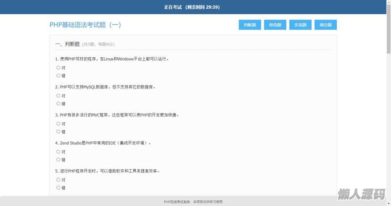 懒人源码 » 简单的PHP在线考试系统实例源码