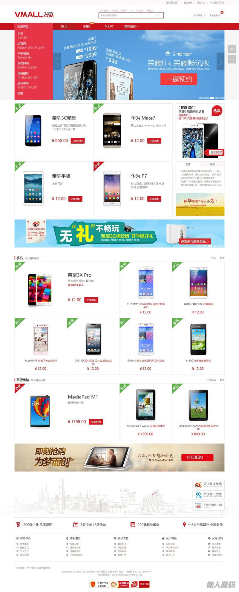 懒人源码 » ThinkPHP仿华为商城源码带支付宝接口 商品首页展示;用户意见;商品分类列表;订单生成 在线付款