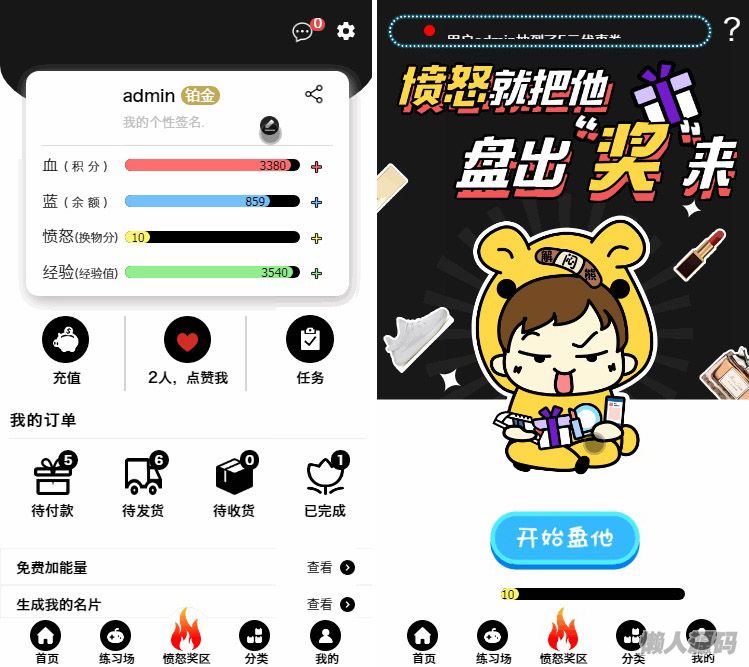 源码使用ECSHOP进行开发,功能强大、完善。实名、签到、任务、推广等,集成多个。可直接购买商品,也可以消耗血量闯关来赢取商品。愤怒奖区可以消耗血量获取。