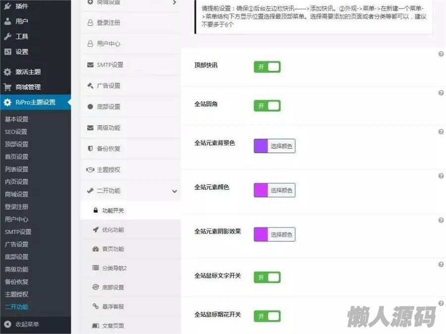 懒人源码 » WordPress资源分享下载站日主题RiPro主题全站美化包 集成到后台功能