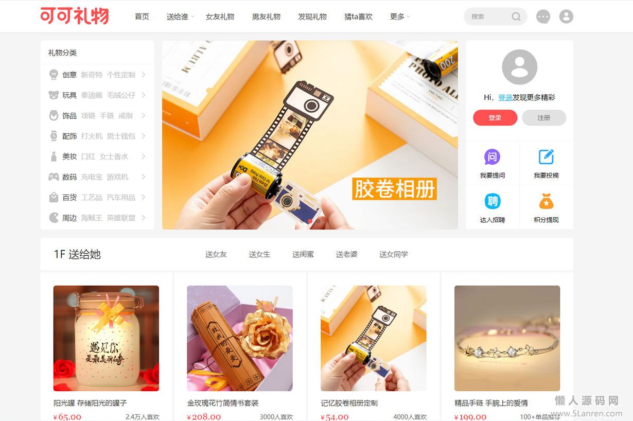 懒人源码网 » 帝国cms7.5仿可可礼物网漂亮大气淘宝客网站源码