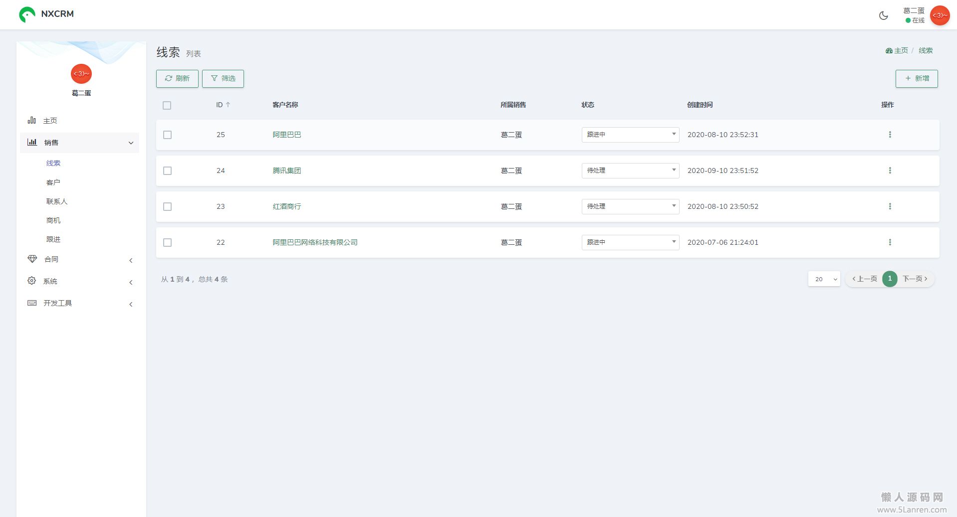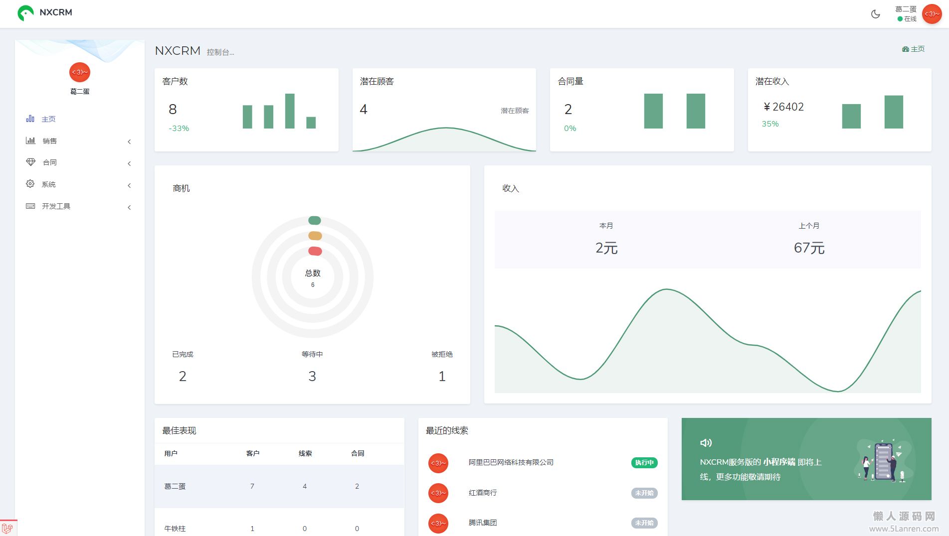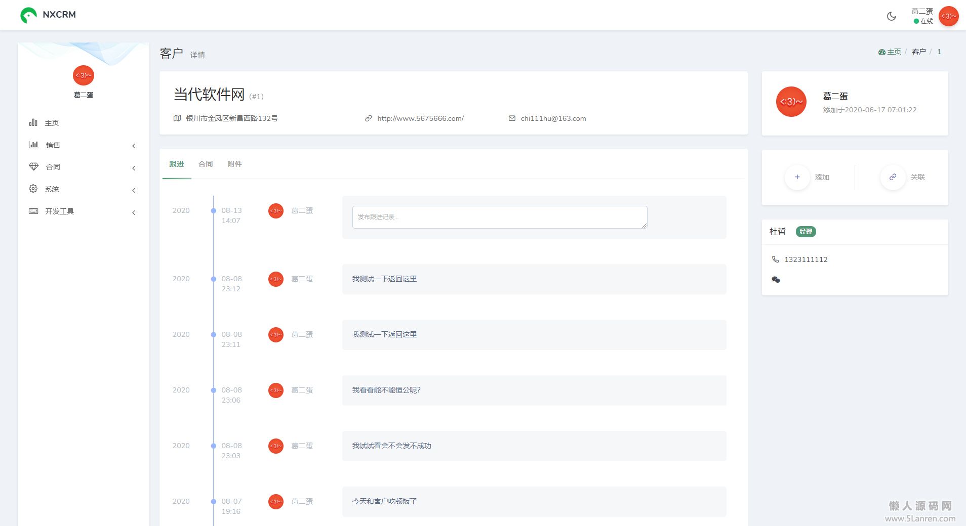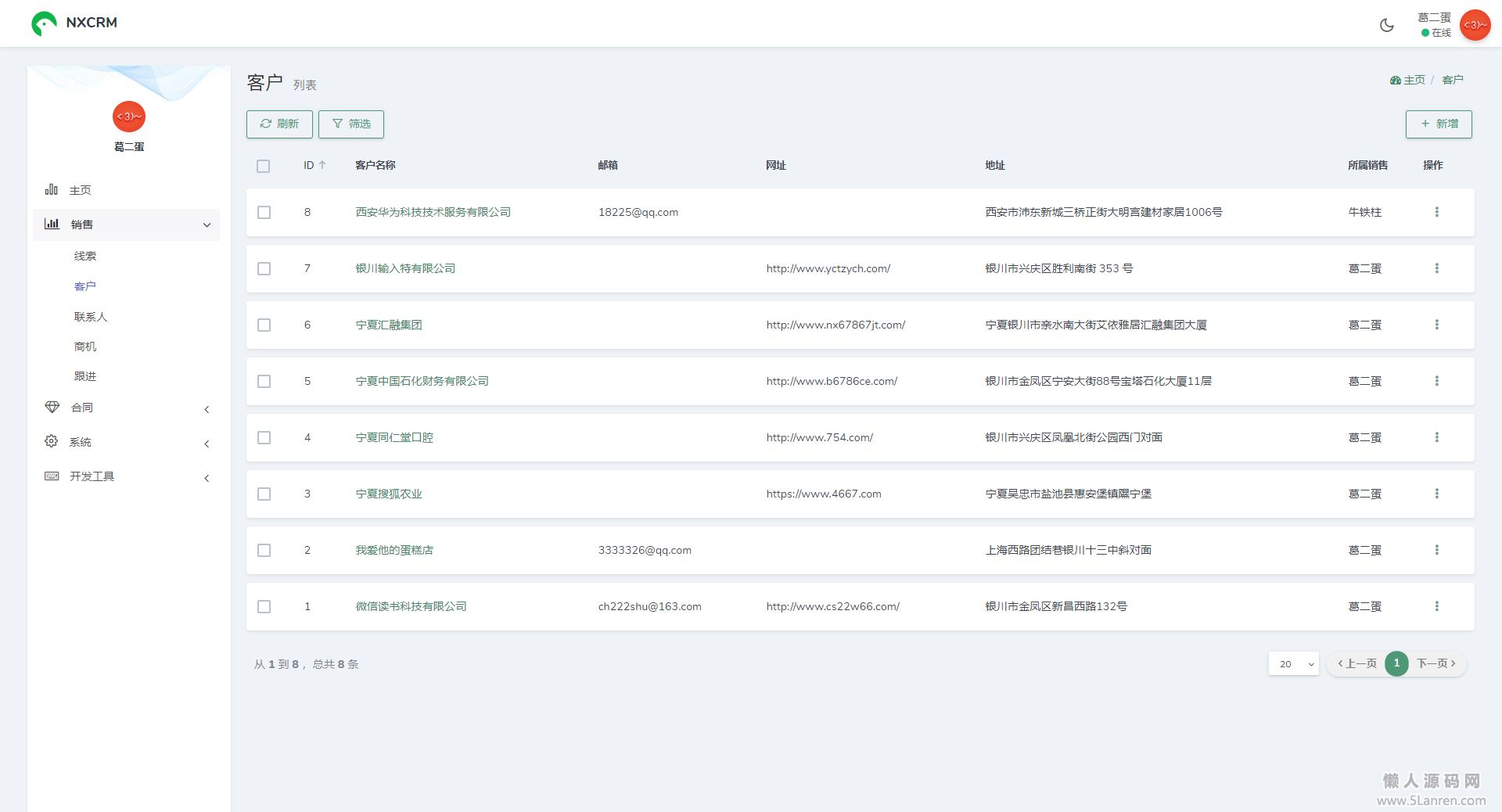 懒人源码网 » 【NXCRM客户管理系统 v2.2.5】合同电子档备份+主题切换+数据统计+对接宝塔
