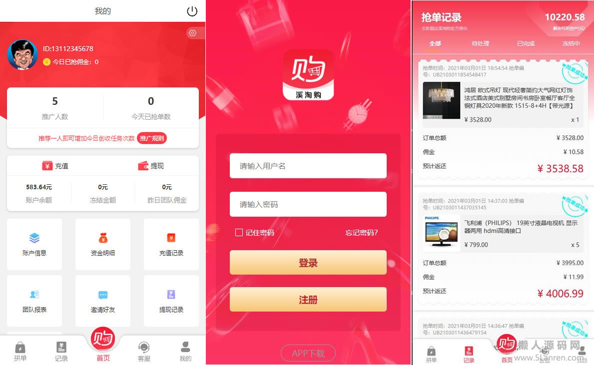 【溪淘购V12】全新UI全新发布枪单还利赚佣金平台系统源码