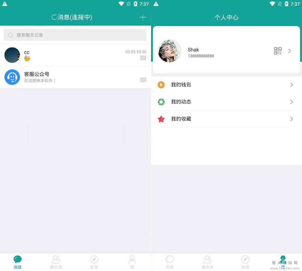 懒人源码网 » 仿微信聊天im酷聊版app源码 即时通讯app源码+钱包红包发现等功能+安装教程