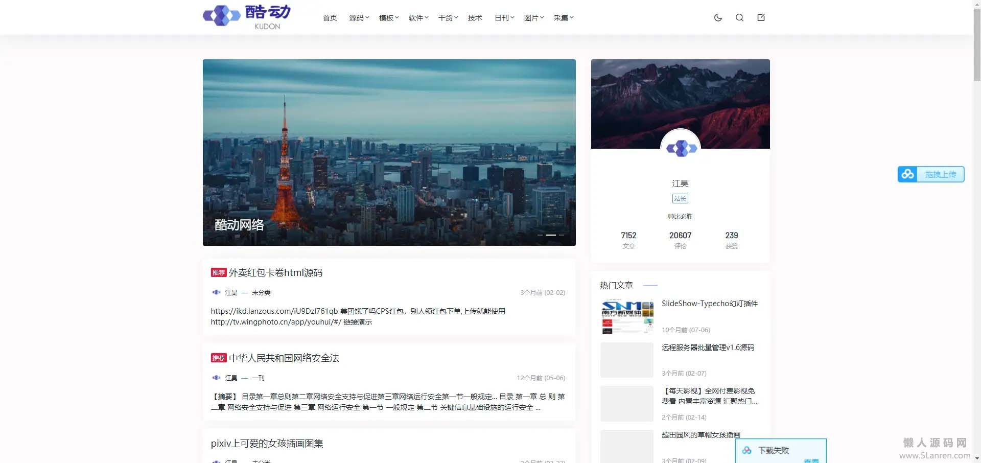 酷动网博客博客已经有7000+文章,模板使用的是pandapro-自己修复了很多