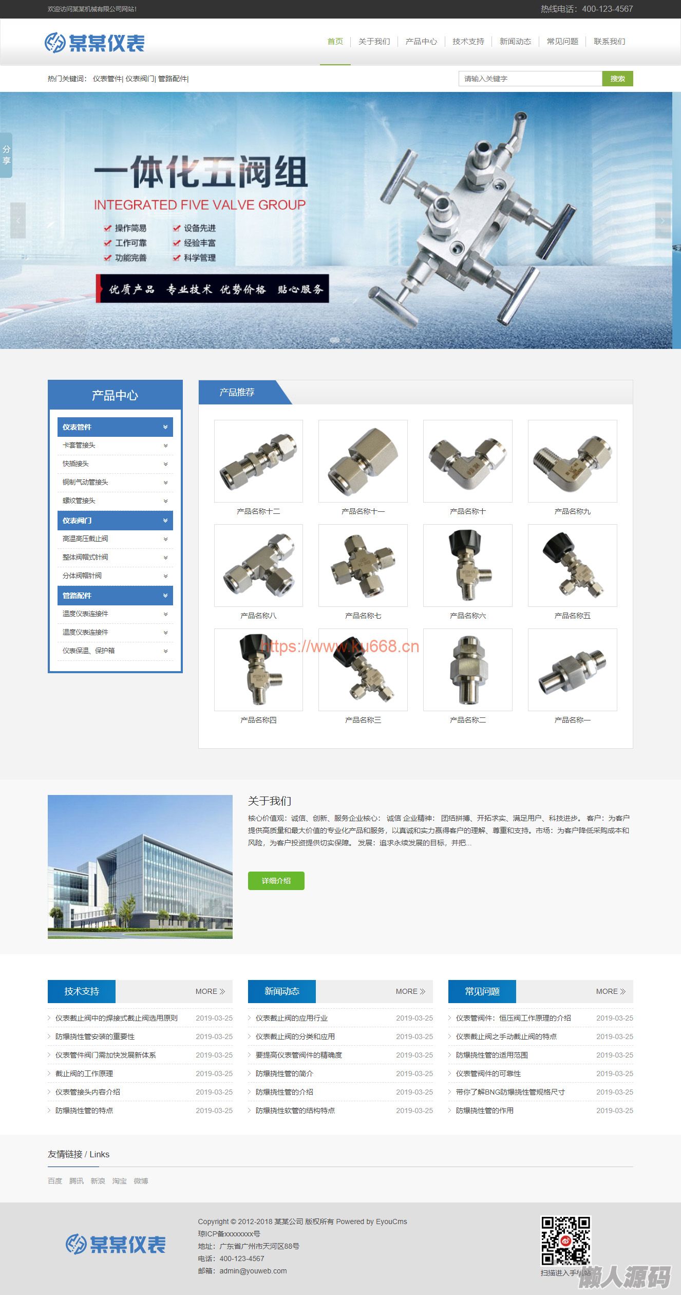 懒人源码 » 响应式防爆仪表管阀件公司网站模板源码 带手机端+后台