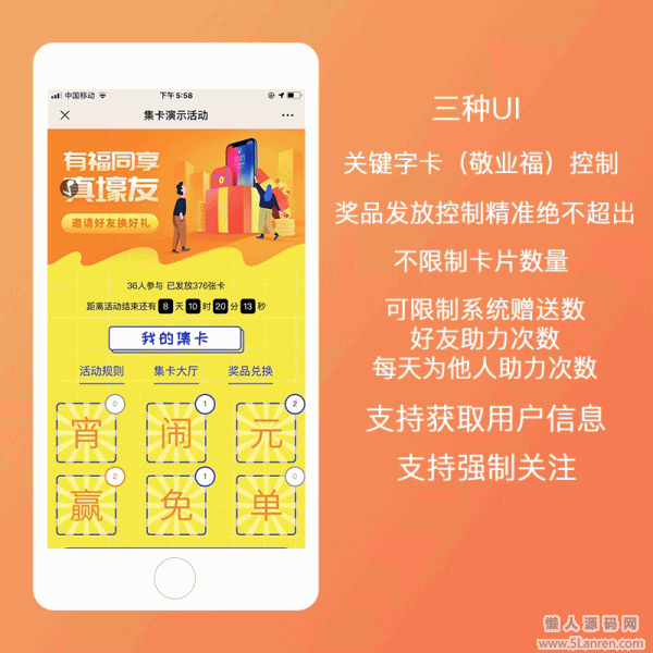 懒人源码网 » 集字卡v4.3.4 微信公众号原版 三种UI+关键字卡控制+支持强制关注