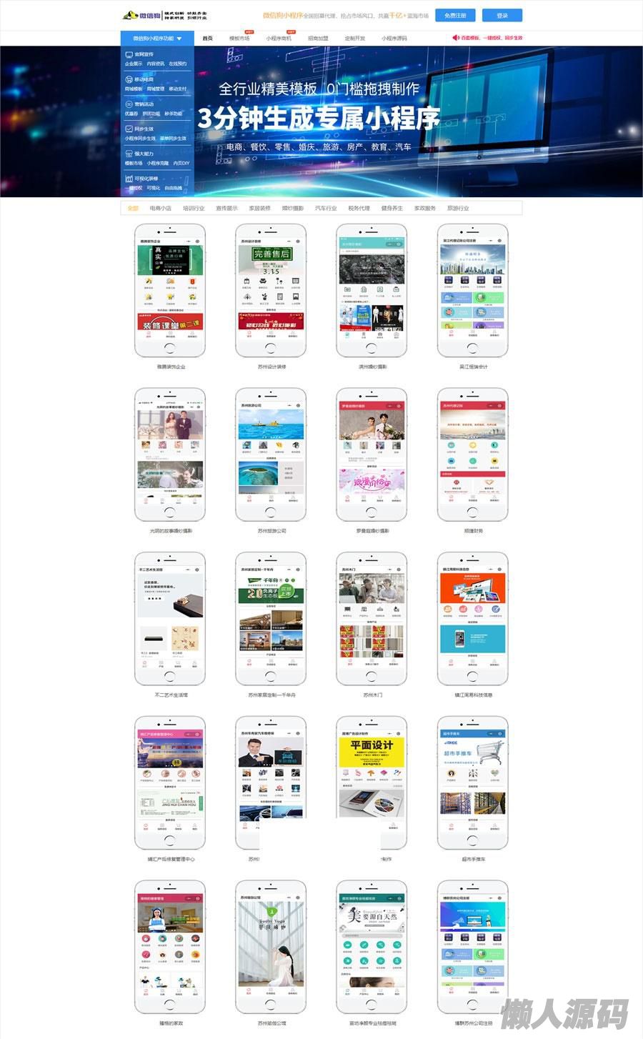 懒人源码 » PHP微信狗可视化小程序平台源码OEM招商加盟版 百度小程序可视化平台 百套模板