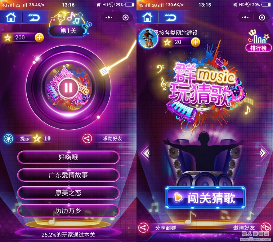 4,小程序可生成 小程序码或转发给好友来猜歌,双方都可积分,有助于推广。