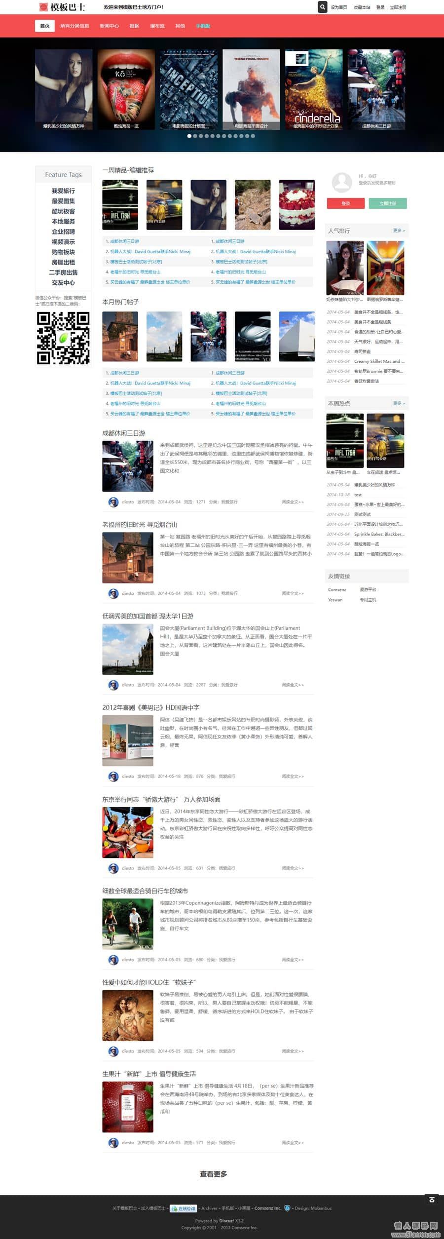 1、模板版本支持:discuzx3.0版本,discuzx3.1版本,discuzx3.2版本,