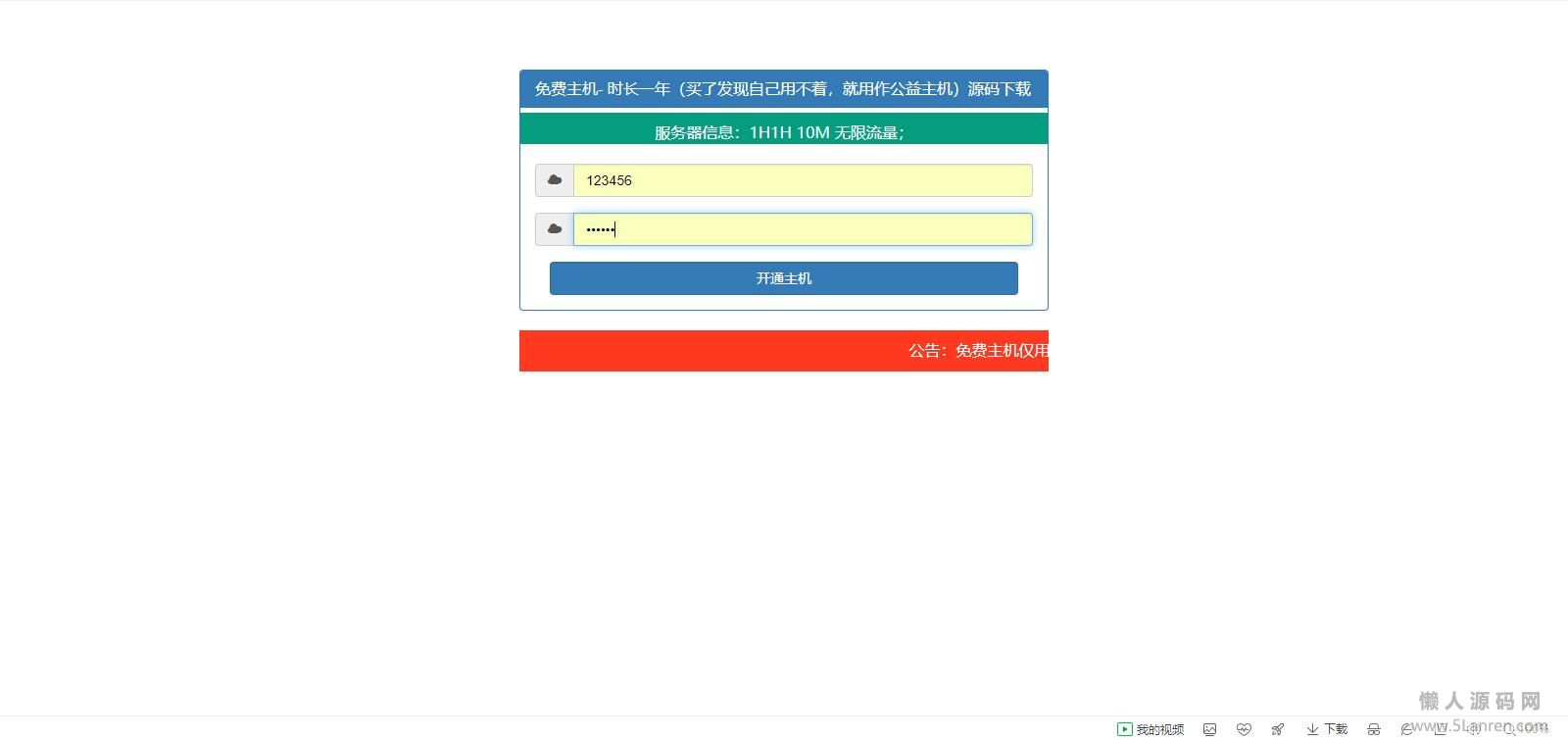 免费主机开通源码主机可用,此源码为接口版,具体接口多久失效我们也不知道,耍是吧!也可以拿去看一下代码,免费给大家吧