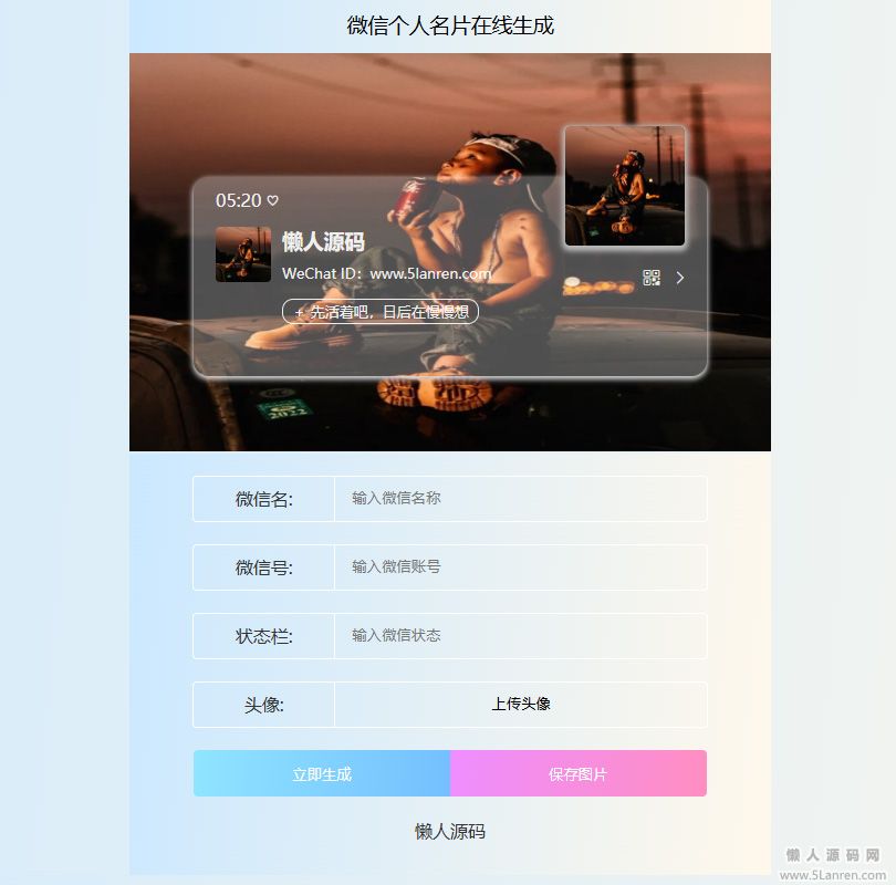 懒人源码网 » HTML源码 微信个人名片H5生成器