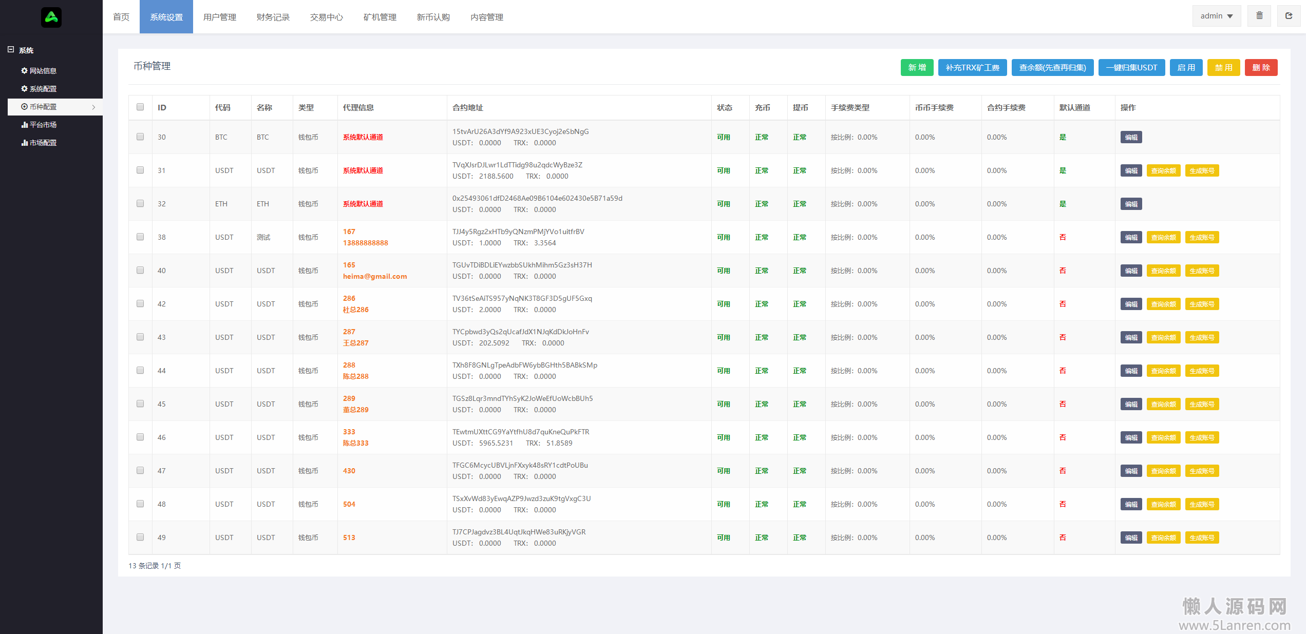 新增币种配置为一个总代一个收款地址,后台设置默认地址,没有设置代理专用地址的,使用默认地址。设置代理专用地址的,则该代理下面的所有代都使用这个专用地址进行。