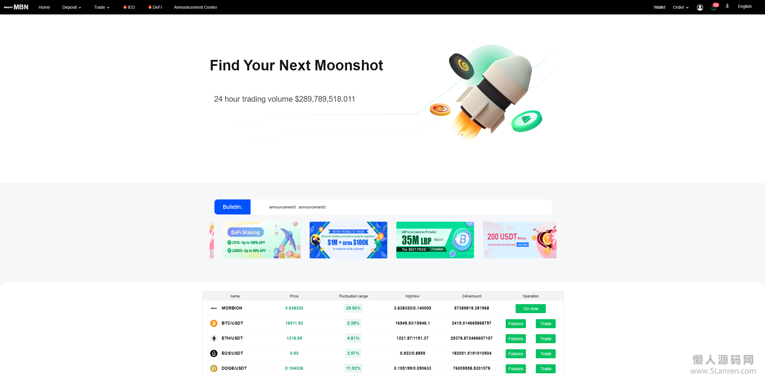 懒人源码网 » 2022年11月最新二次开发8国多语言交易所源码+币币+秒合约+矿机+申购+超多实用多功能系统