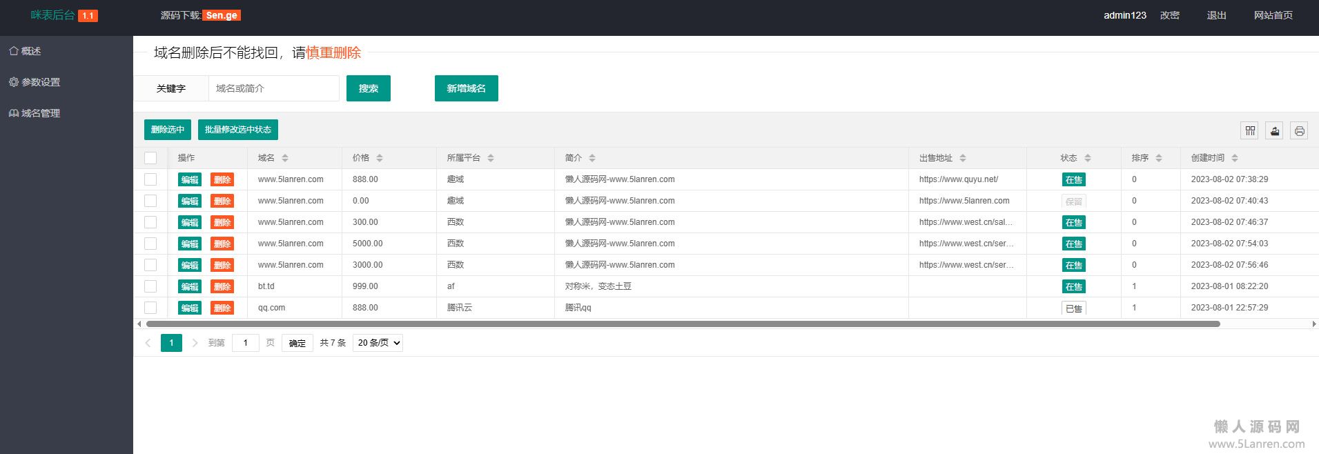 懒人源码网 » 【亲测】小票风格域名出售页面 带后台