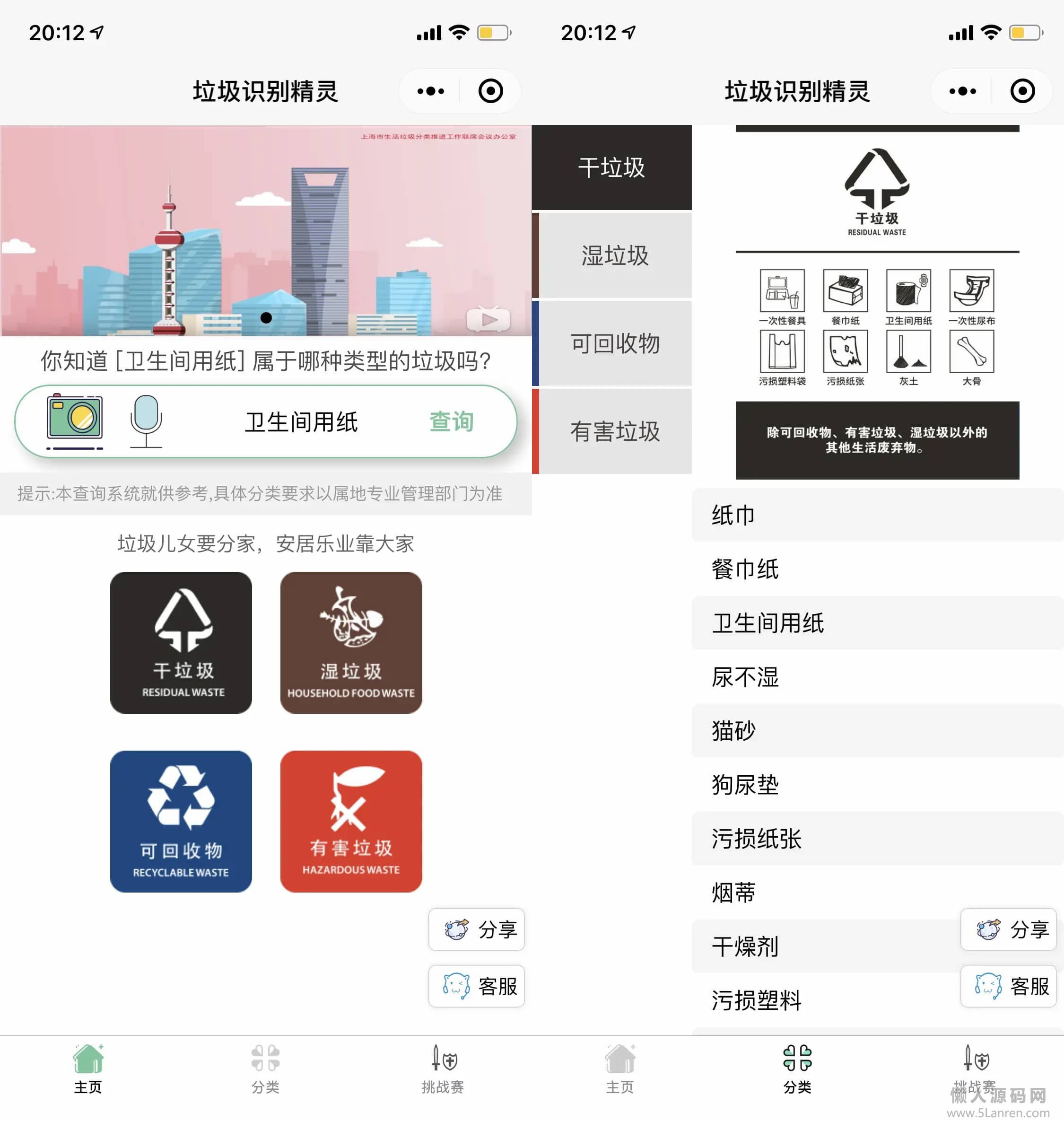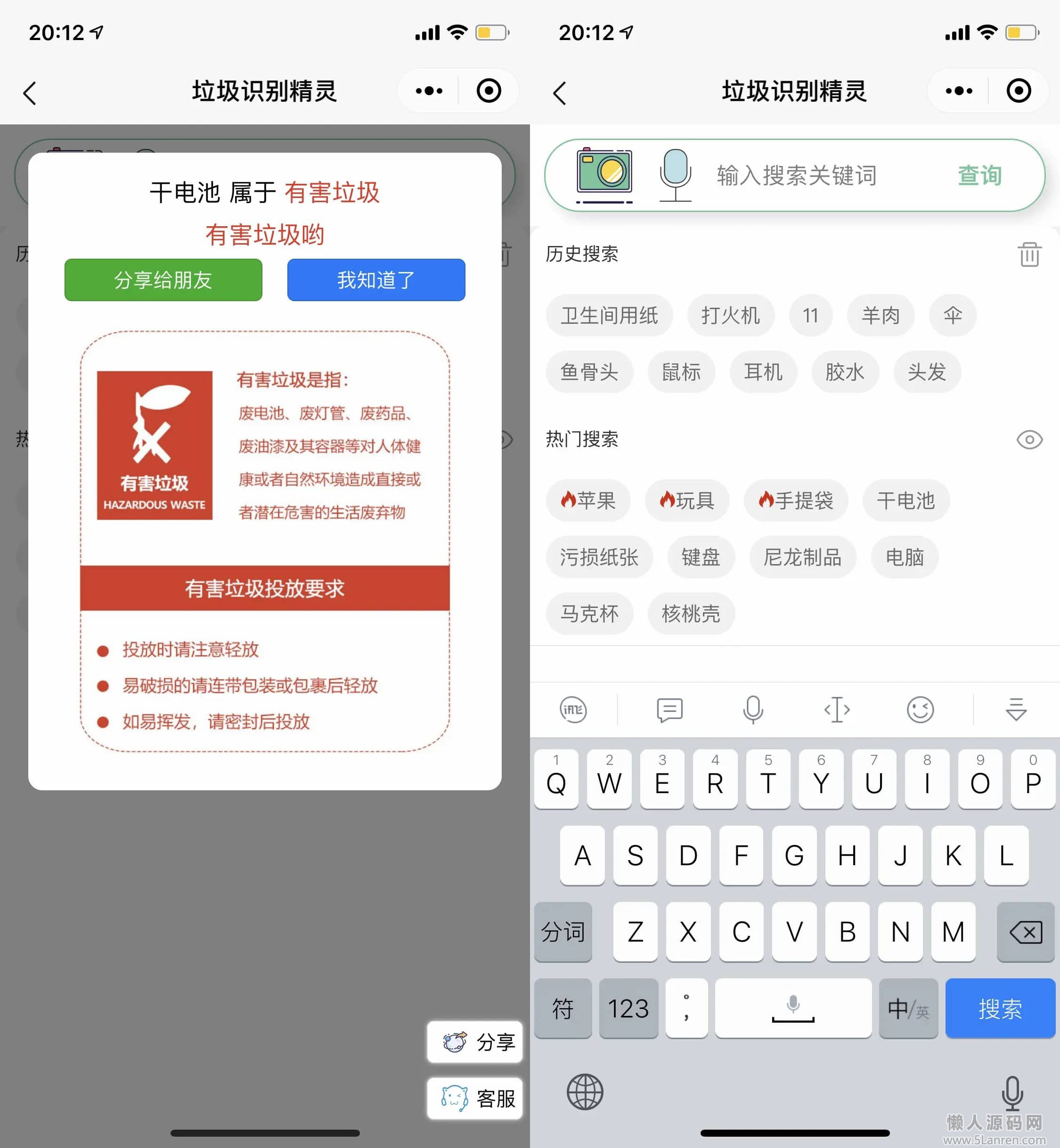 懒人源码网 » 一键识别垃圾分类应用 垃圾识别工具箱微信小程序源码 语音识别和图像识别 采用 百度智能云平台服务