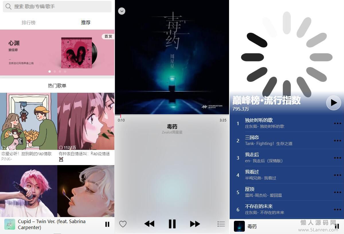 懒人源码网 » 在线音乐网站系统源码对接QQ音乐,支持搜索和热榜功能