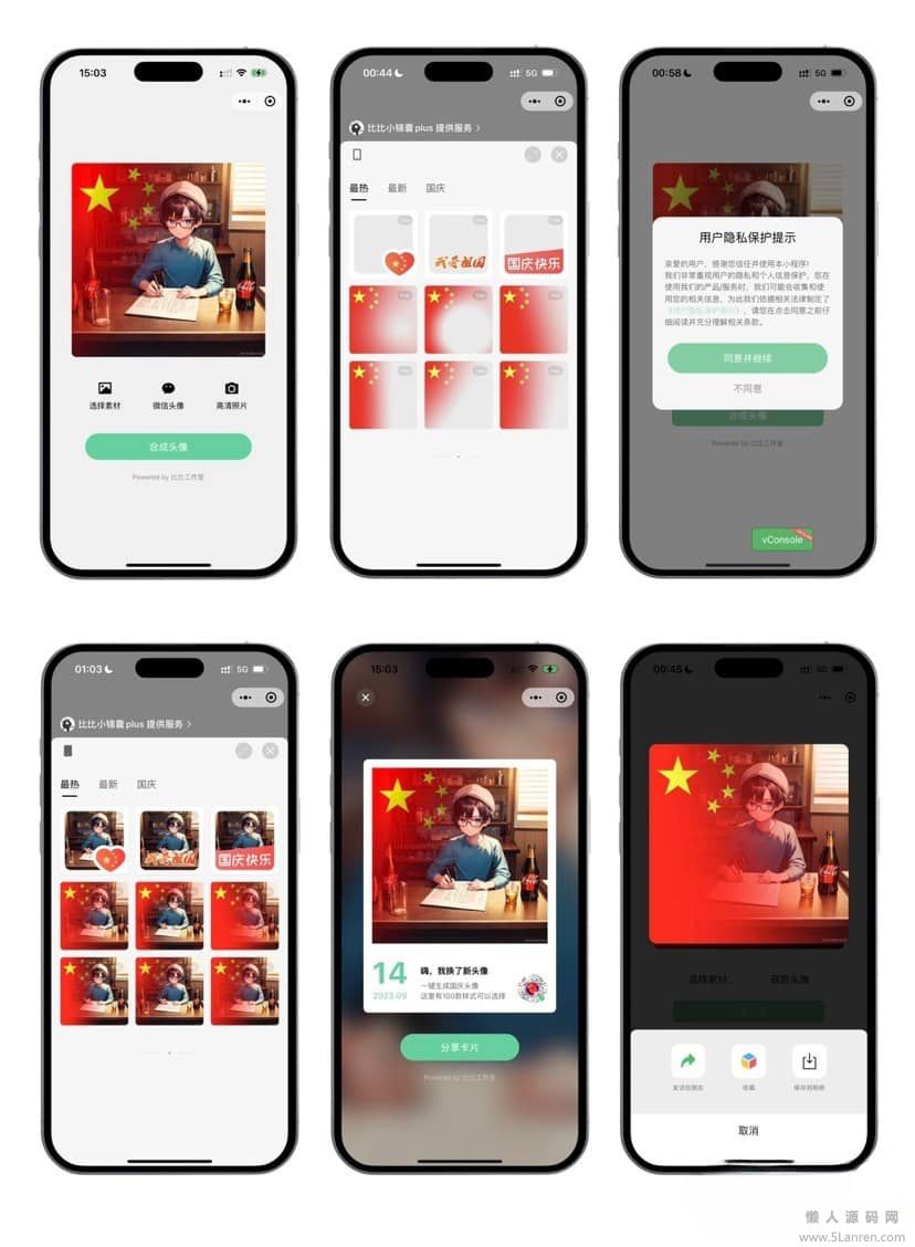 懒人源码网 » 已适配微信小程序隐私政策 基于skyline+vue3微信头像生成小程序