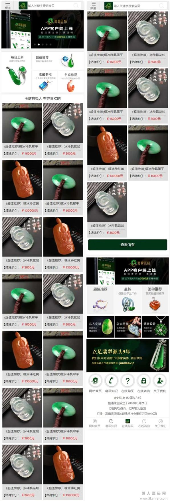 懒人源码网 » 帝国CMS源码《珠宝网》企业官网大气绿色珠宝玉器奢侈品古玩类展示型商城源码 带手机版