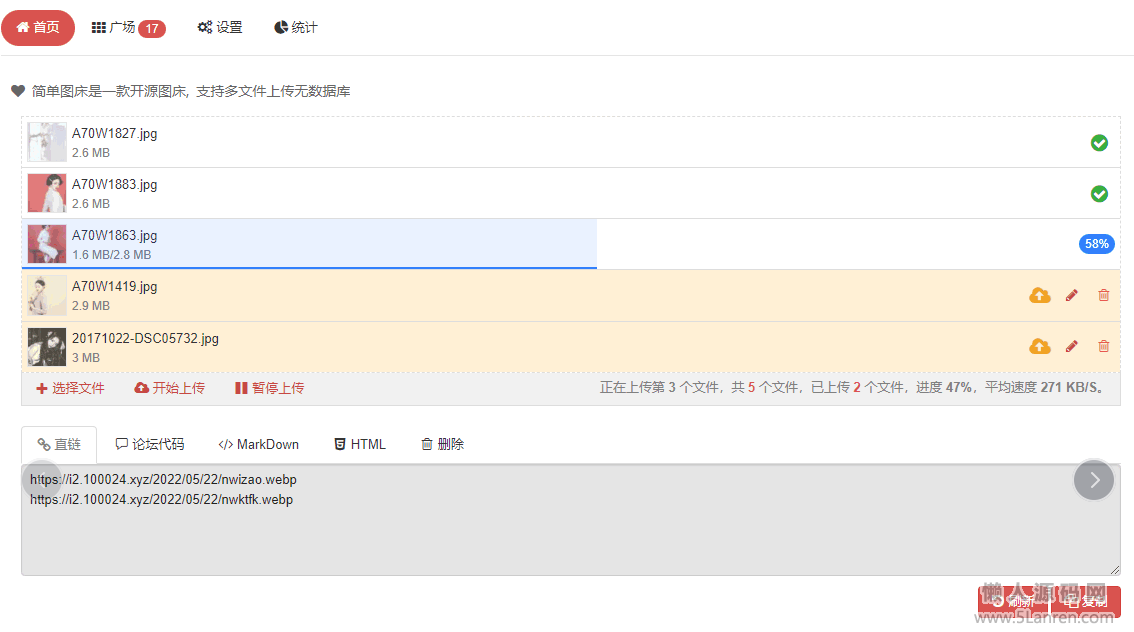 多文件格式支持:不于图片,还支持其他文件类型的上传。