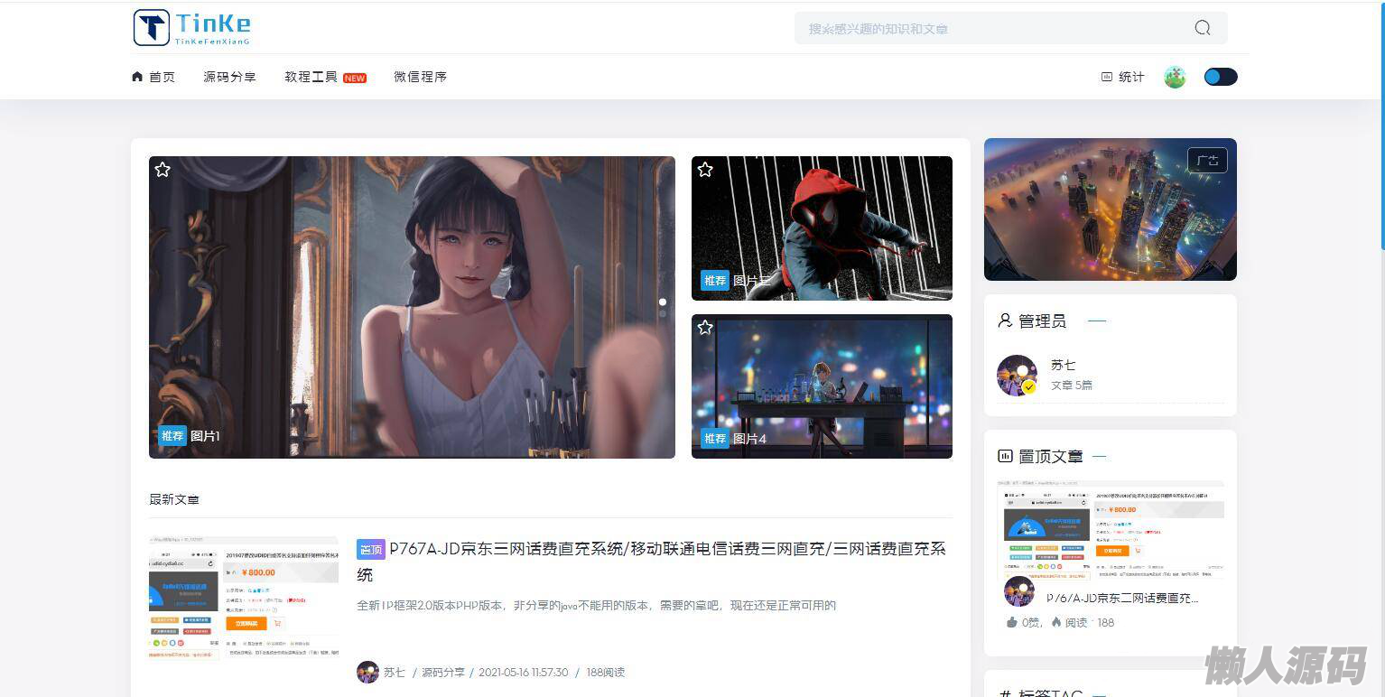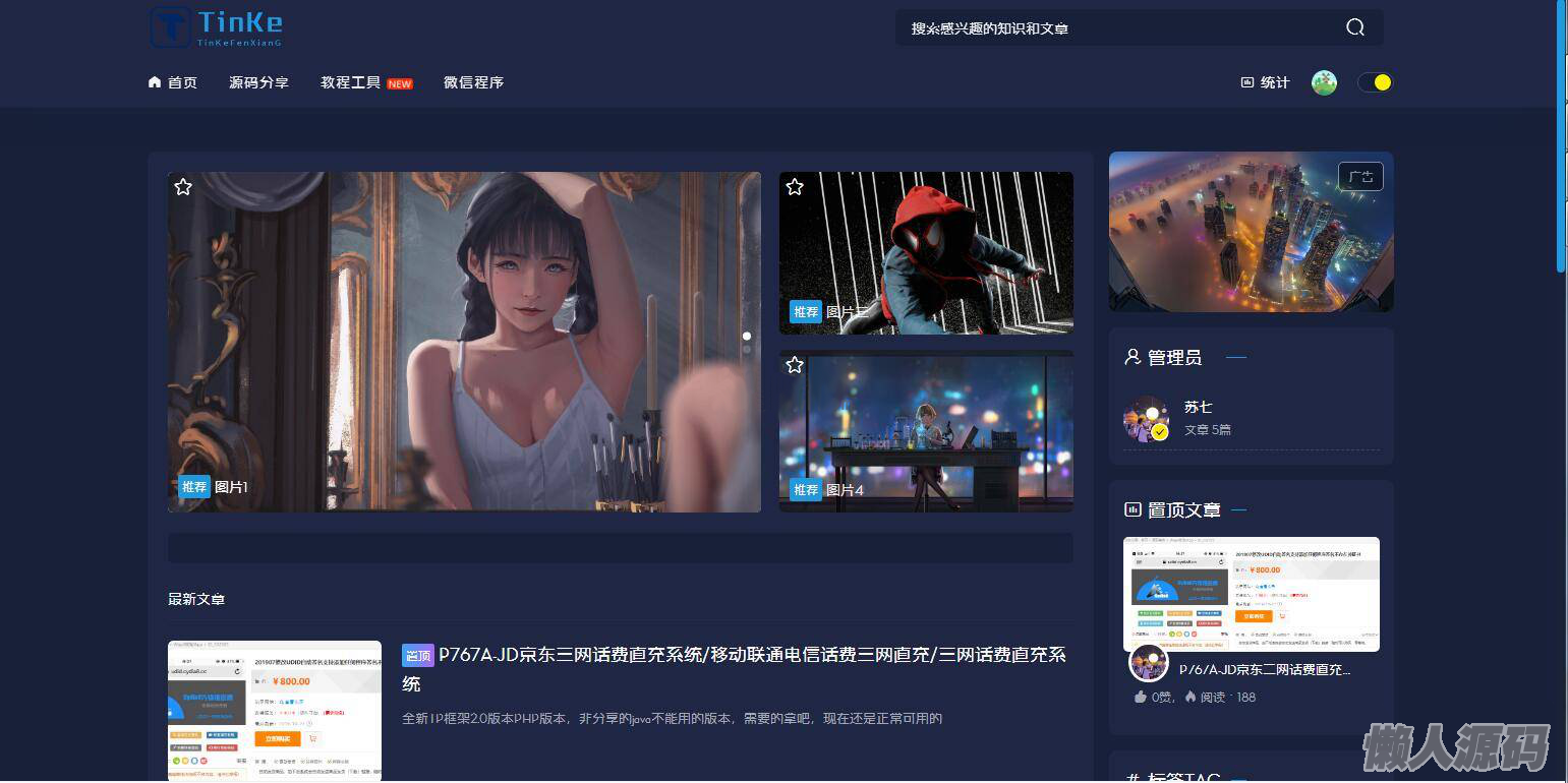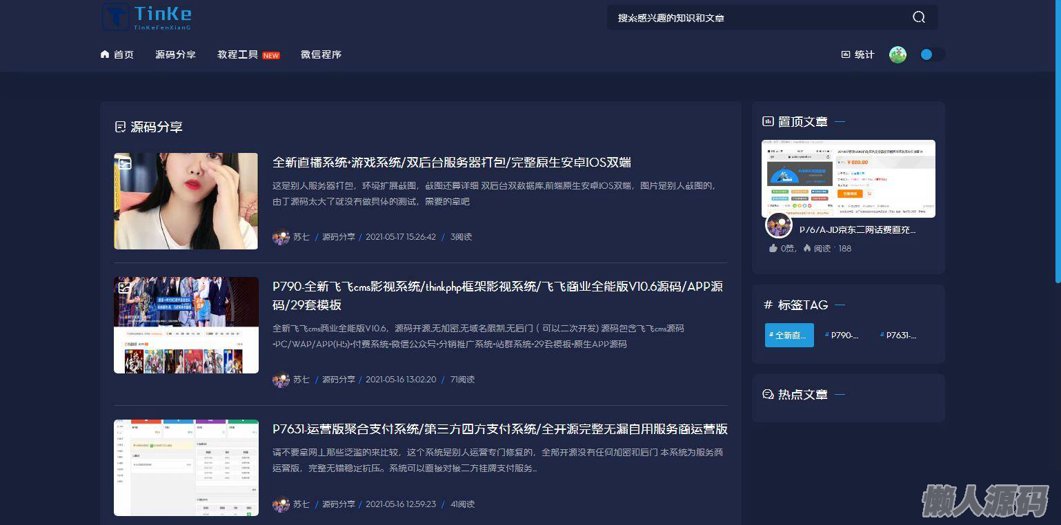 懒人源码 » 最新二开版本源码博客论坛源码,UI很漂亮,可切换皮肤界面。