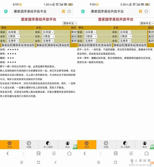 懒人源码网 » 2023纯html5代码风水星座配对源码