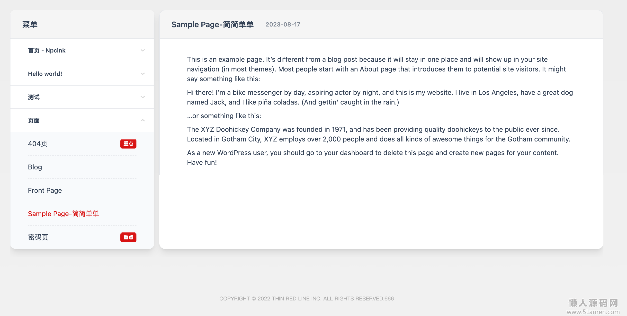 懒人源码网 » WordPress 文档主题模板Red Line -v0.2.2