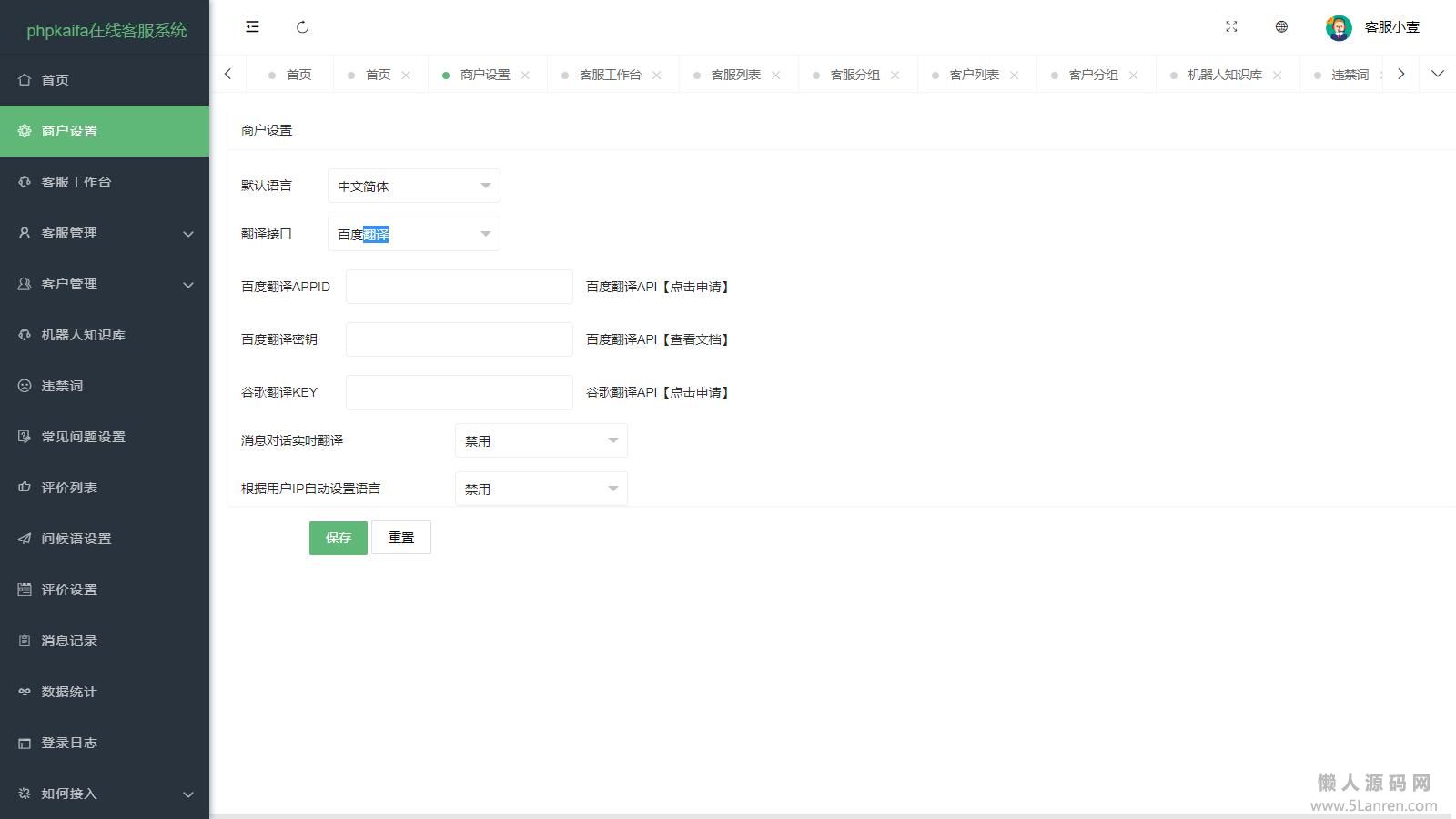 懒人源码网 » 在线智能客服源码支持html5自动作答接入客服